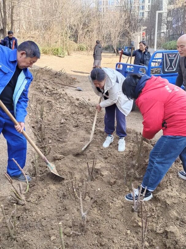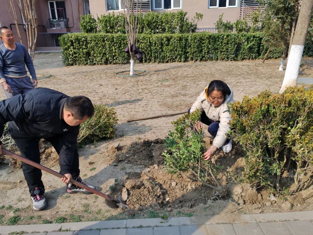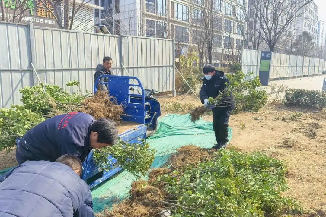 与此同时,社区同步推进专项绿化行动,组织物业人员严格按照栽种规范,挥锹铲土、踏土压实、浇水灌溉,将黄杨、女贞等绿植整齐栽种到位,新绿点缀楼宇之间,让社区环境面貌焕然一新。