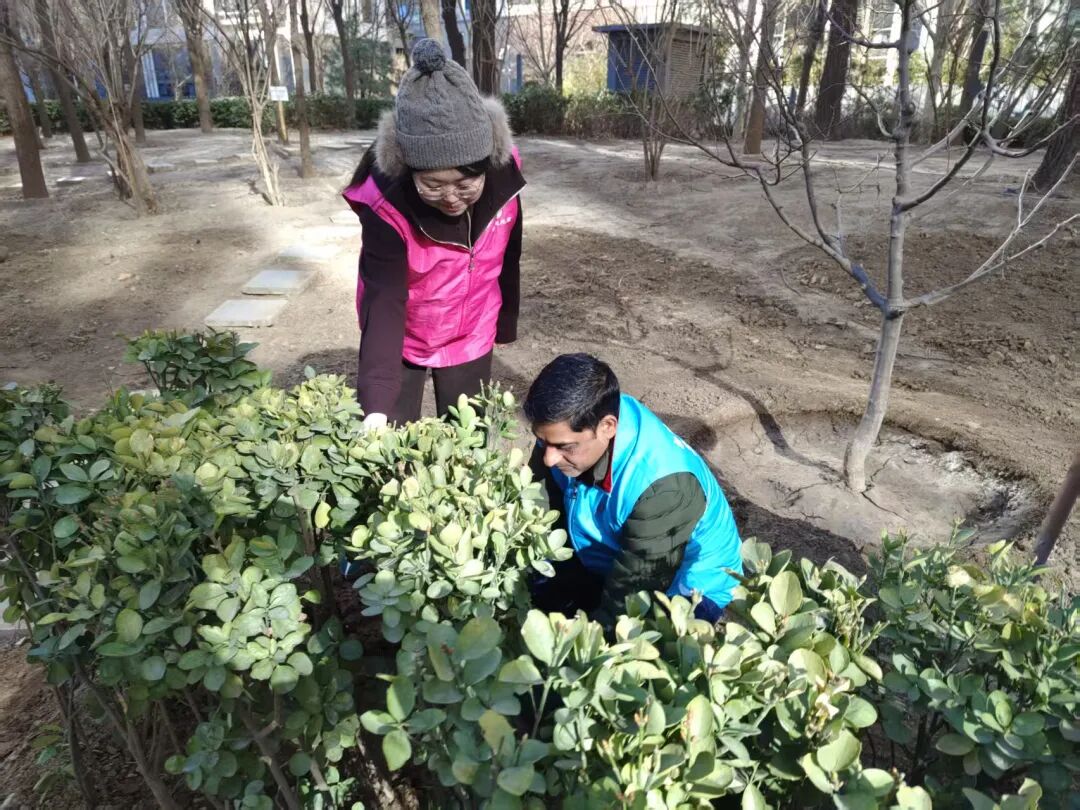走进金港嘉园社区“美化家园,携手添绿”主题活动现场,社区工作人员、志愿者们热情高涨、分工明确,扶苗培土、提水浇灌,每一个环节都细致认真、有条不紊。社区 “I Do ”国际志愿服务队成员Braham也积极投身其中,与大家并肩劳作。经过一上午的忙碌,数百株月季与黄杨在园区绿地中稳稳扎根,为小区注入鲜活春意,也让共建共享的理念在劳动中悄然传递。