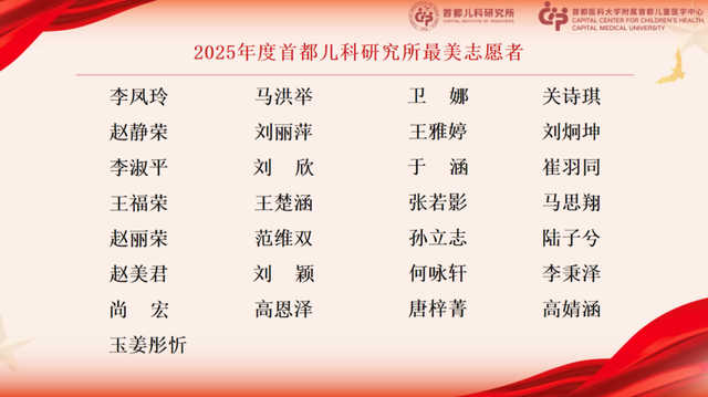 志愿之路,步履不停;大爱无声,温暖相伴。2026年,首儿所将以此次表彰大会为新起点,凝聚志愿力量、厚植公益情怀,让志愿服务之花在医院处处绽放,用爱与坚守守护每一位患儿的健康童年。