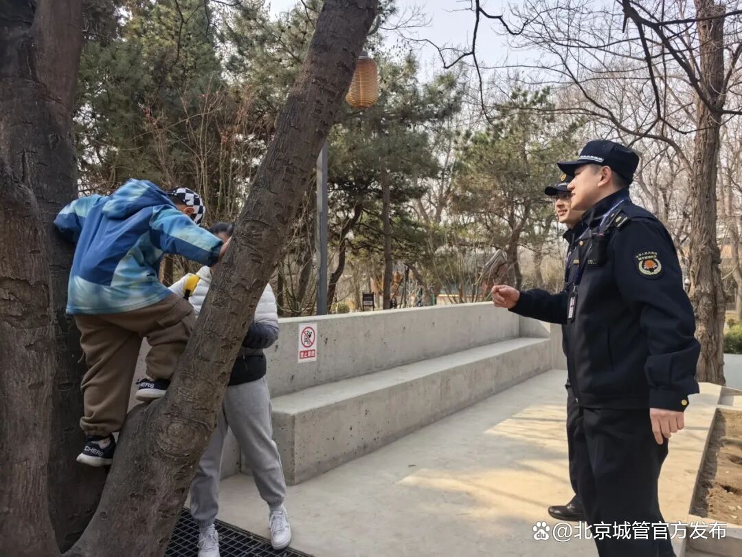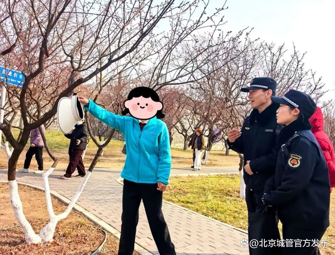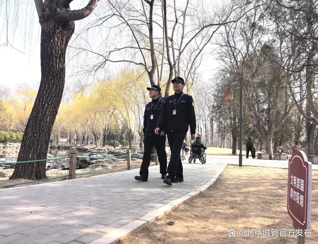 近年来,京城百余座公园拆栏透绿变身无界公园,让越来越多的市民趁着早春就迈步走进公园休闲赏花。城管执法部门跟着游园高峰节点调配执法力量,深入各个公园景点,对攀折花木、采挖野菜、乱扔垃圾等不文明行为及时劝阻制止,对情节严重的依法依规查处;同时结合无界公园特点,扩展管控范围到公园周边区域,及时发现处置无照经营、散发小广告等违规行为,园内园外同步发力,为市民群众的游园出行全流程保驾护航。