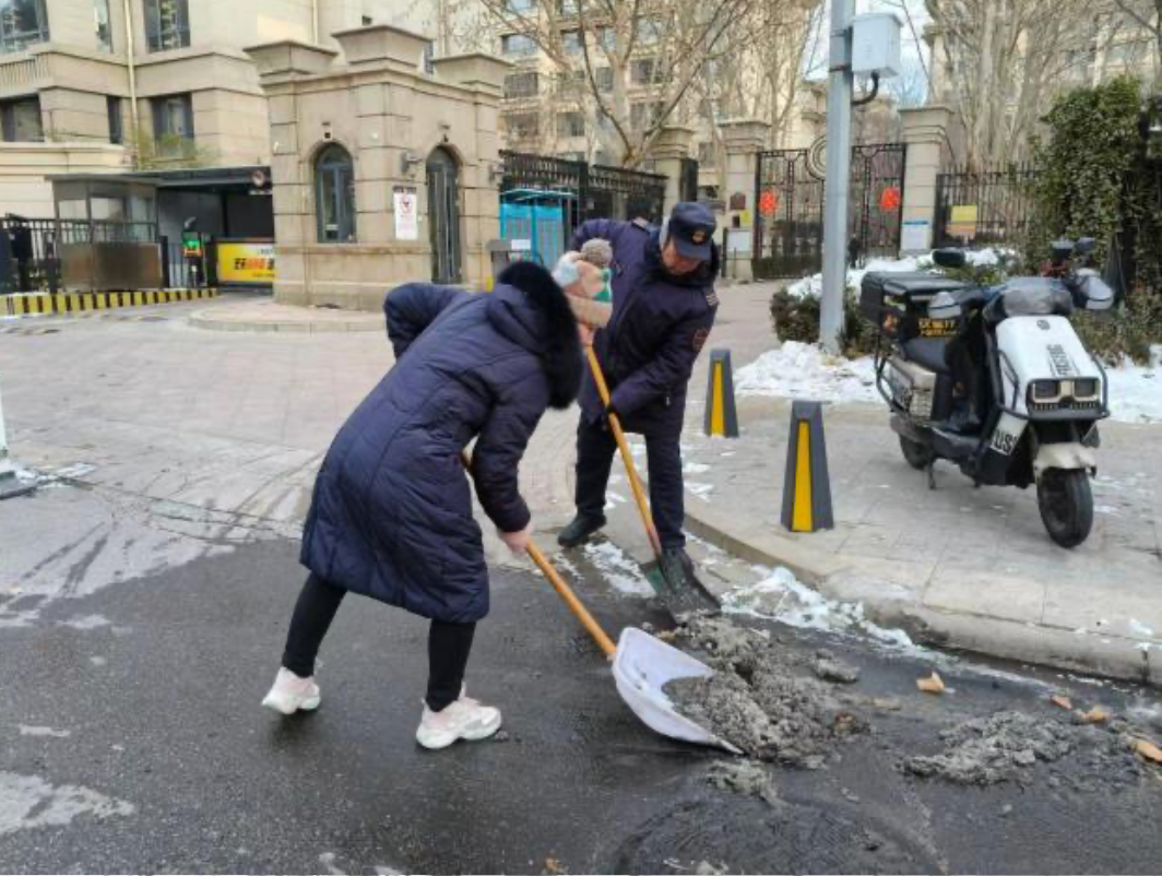 实干在岗,应急一线显担当。应对大风、大雪等极端天气,网格员坚守岗位、主动巡查。对辖区重点区域排查安全风险,及时上报,配合做好防范工作;全力参与积雪清理和道路疏导,提醒居民注意安全,守护居民出行平安。