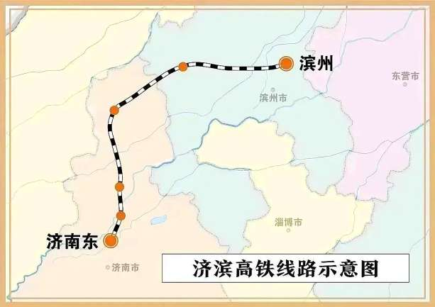 济滨高铁的开通将彻底改变这一现状。济滨高铁正线全长145.3公里,其中济南市境内90.516公里、滨州市境内54.776公里,设计时速350公里。线路从济南东站引出,向北经济南市历城区、章丘区、济阳区、商河县,上跨黄河后向东经滨州市惠民县、滨城区,接入滨洲站。全线共设6座车站,其中滨州境内设滨州站、惠民站2座车站。线路开通后,直接打通滨州与省会之间的快速通道,届时滨州至济南的通行时间将缩短至最快40分钟左右,比当前驾车出行大为提速,此外还将带动沿线城市及县区间的城际客流提速,加强沿线节点经济联系,实现鲁北地区对外互联互通。