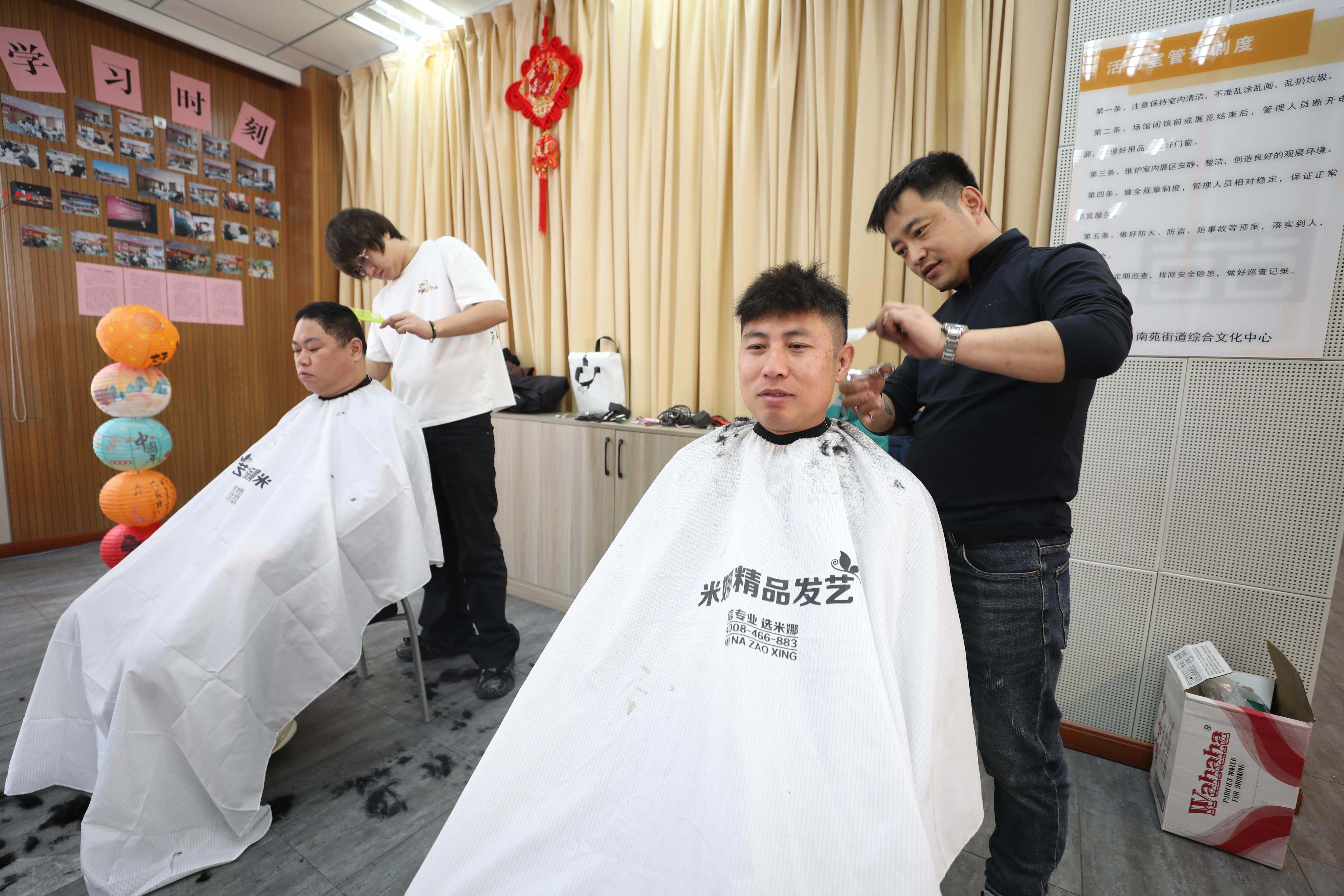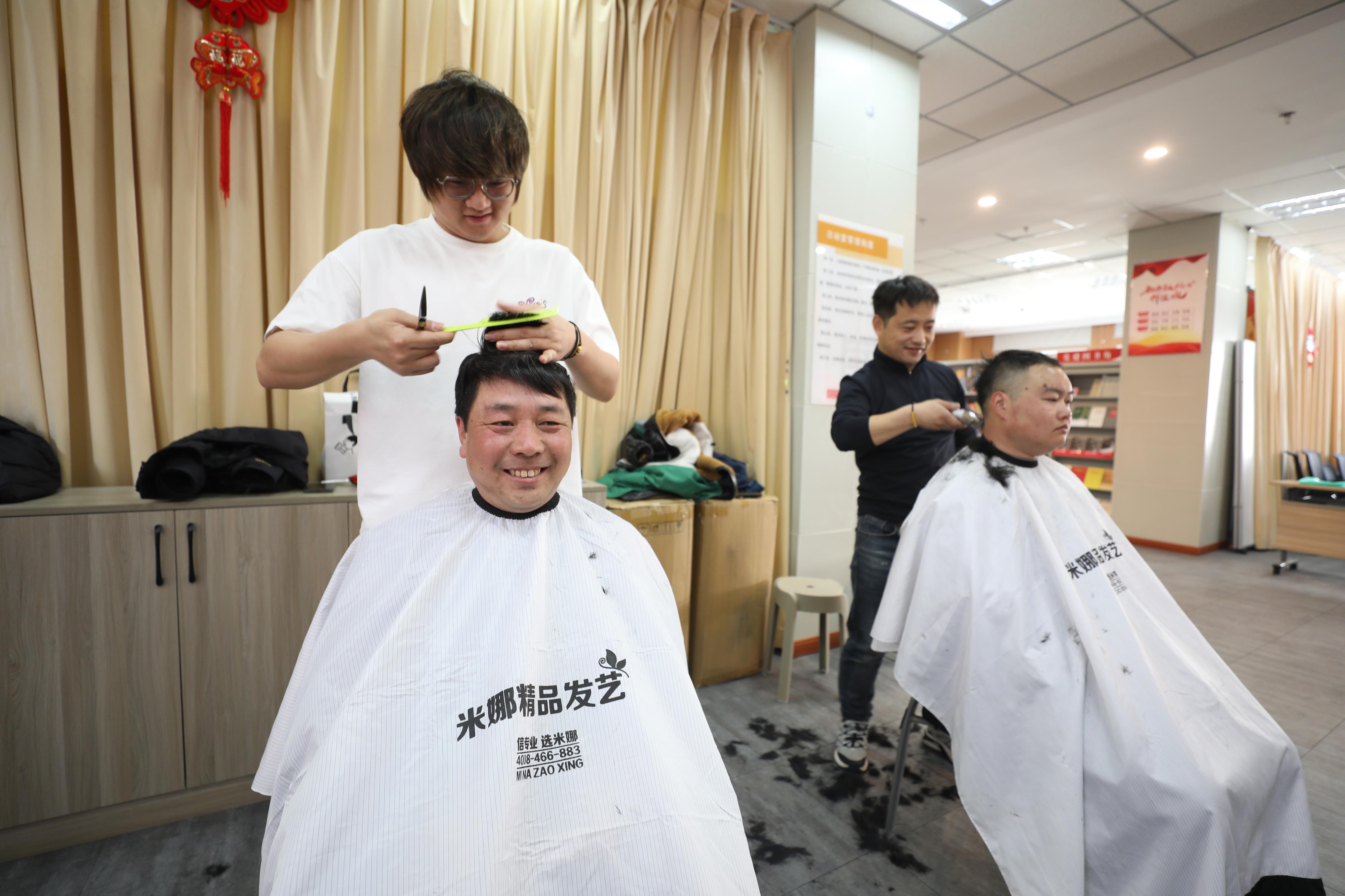 活动现场,理发师们早早准备好理发工具,为辛勤奔波在外的快递小哥、外卖骑手等一线劳动者提供理发服务,讨个“好彩头”。理发师们手法娴熟,耐心询问每位骑手的发型需求,剪刀翻飞间,一个个清爽利落的发型便呈现出来。“平时送单忙,根本没时间理发,今天这个活动太贴心了!”刚刚理完发的骑手杨记星笑着说。