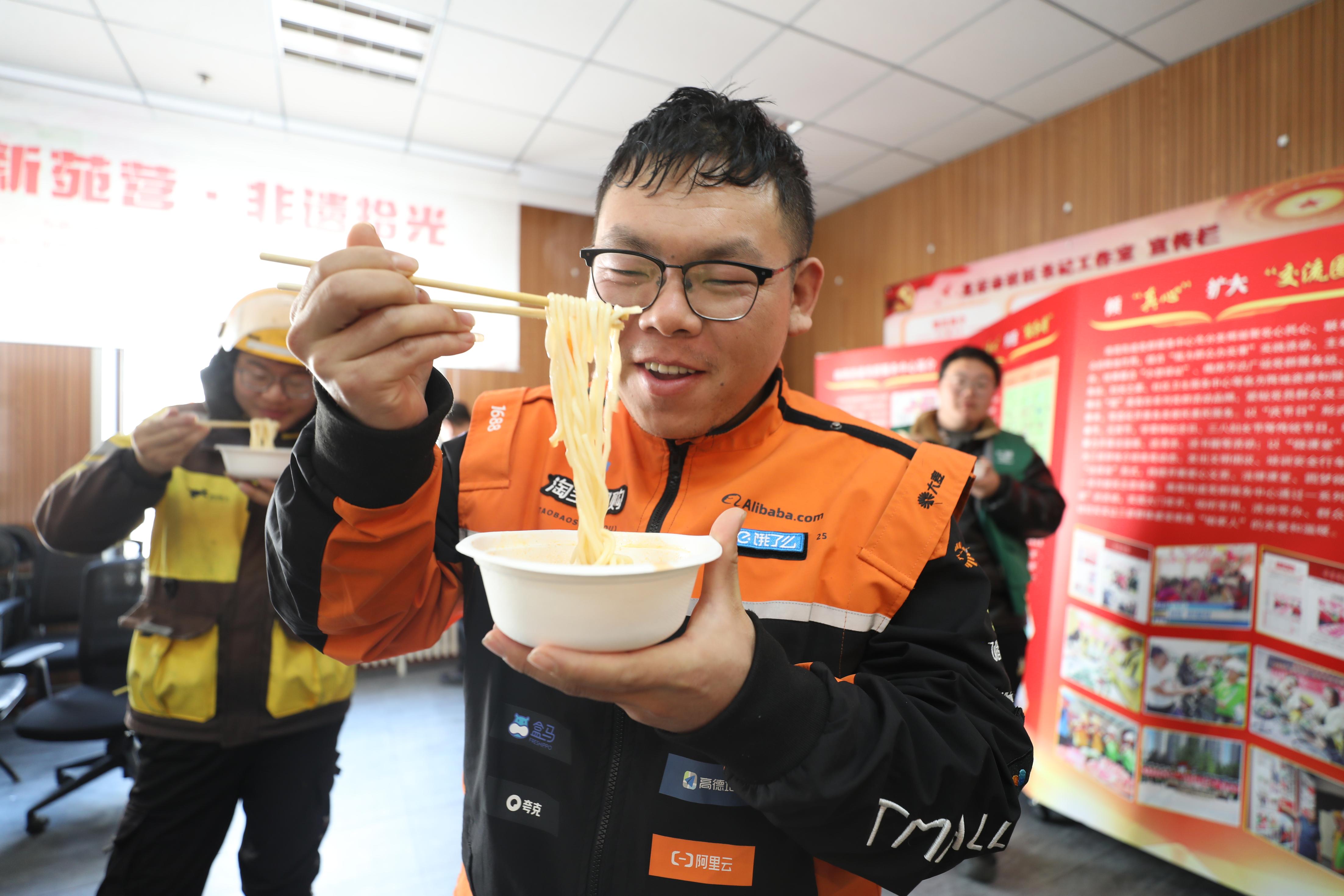 “骨架要固定结实”“筝面裁剪时要比骨架外轮廓大一圈”“拴系提线注意调整好角度”……除了理发服务,骑手们还围坐一起动手做风筝,感受传统文化魅力。现场“南苑骑手”还品尝了龙须面,一碗碗暖心面,让大家感受到了“家”的温暖。