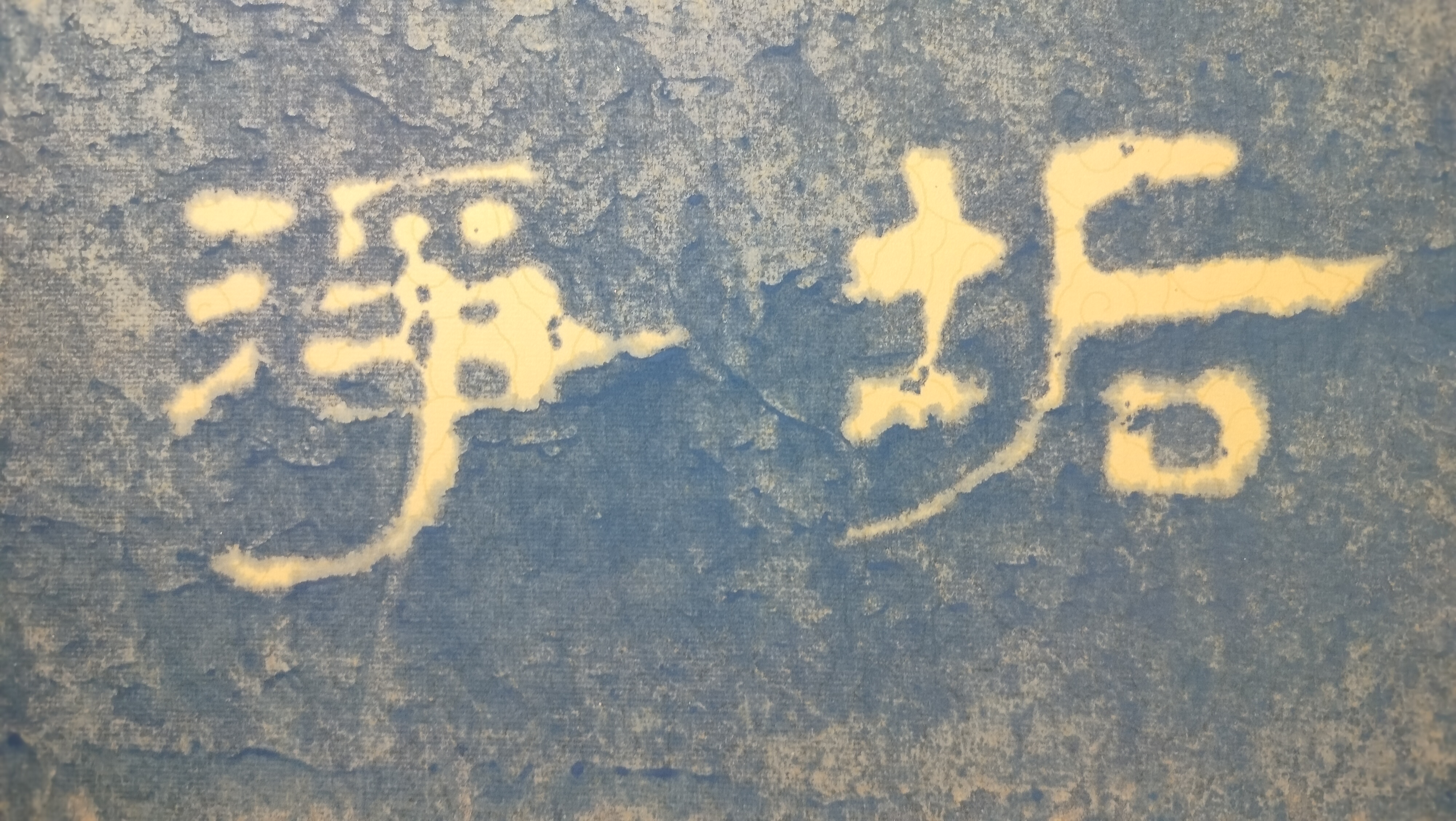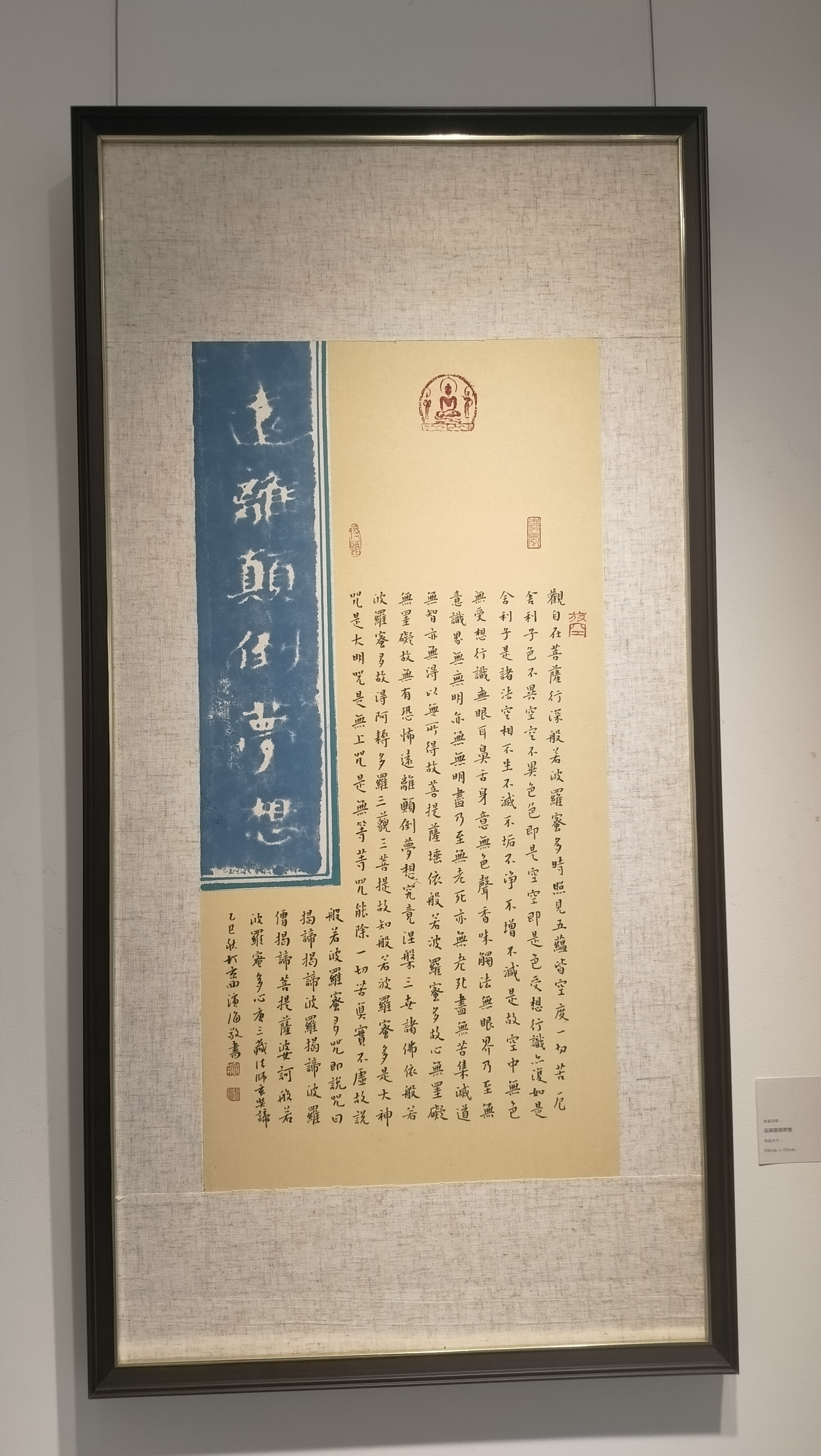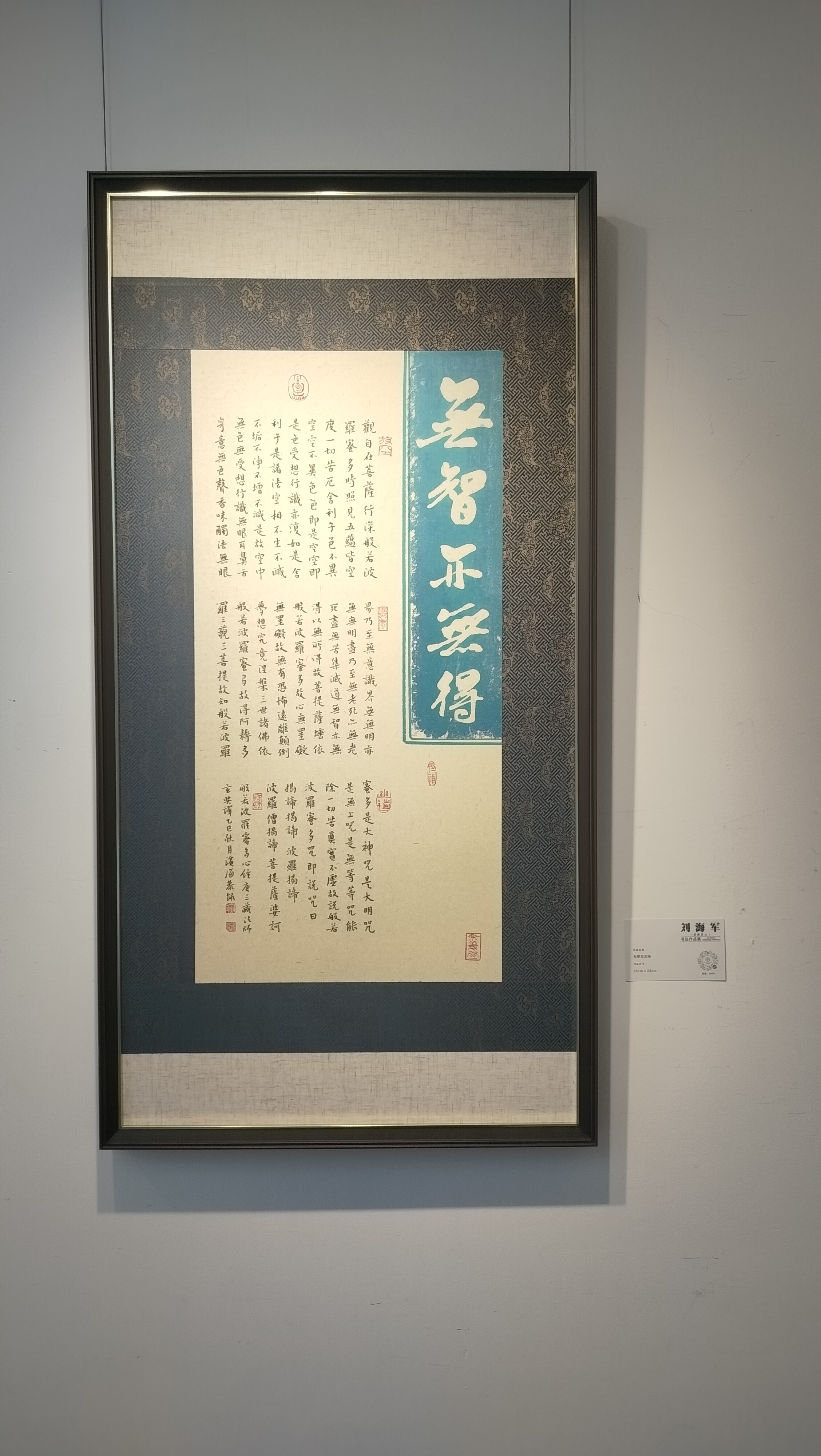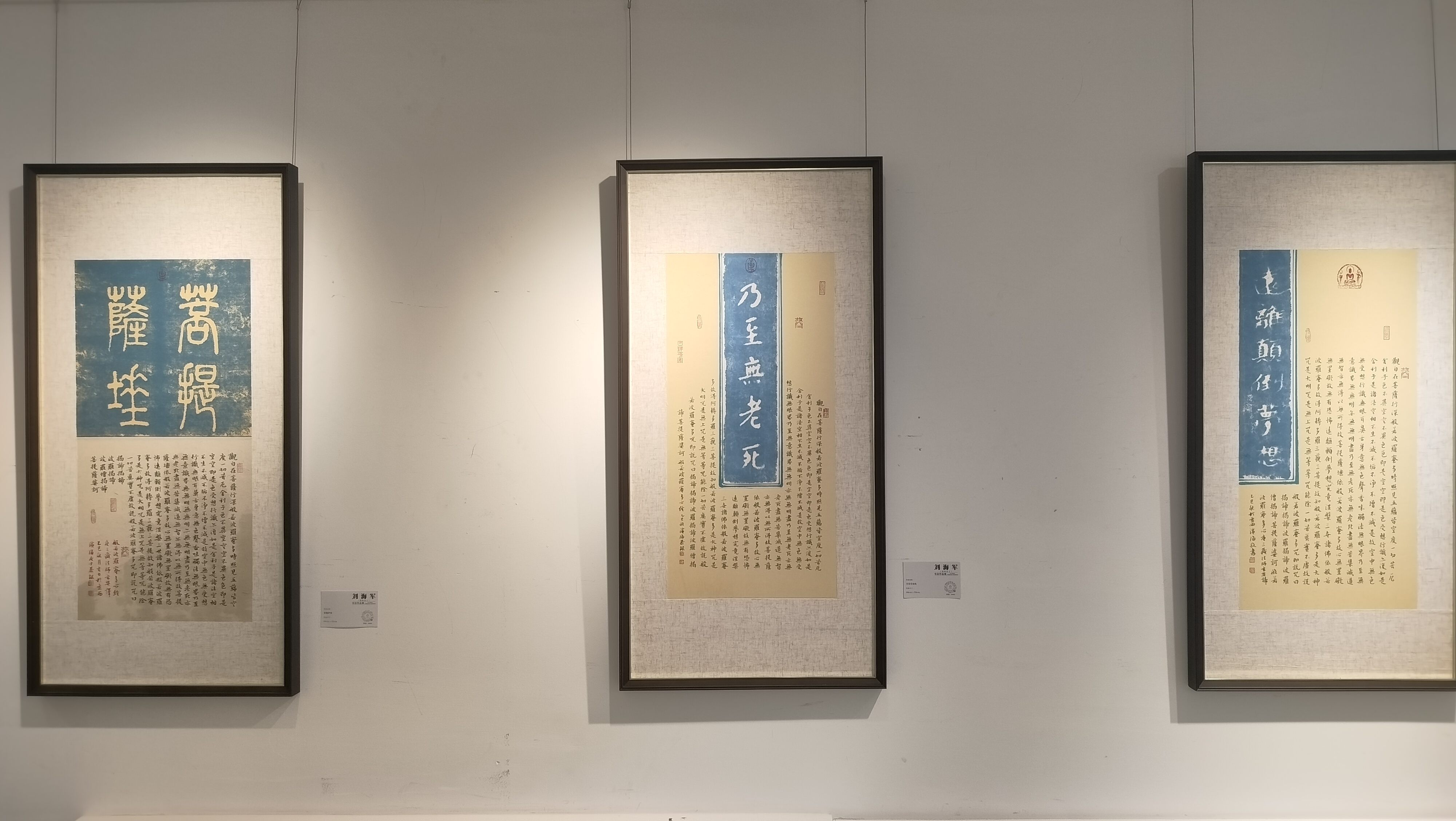 此次展览,刘海军先生的染纸主要采用的是蓝色系列,以体现宁静、疏朗的艺术视觉,以不同字体进行结构体现,和而不同,同而不和。刘海军先生追求书法艺术之美,通过染纸体落墨呈现出古人对色彩美的追求,形成当今书法艺术独具特色的艺术表达。