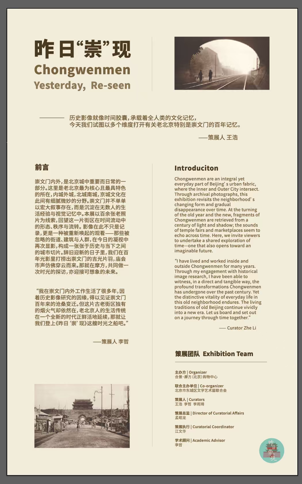 “历史影像就像时间胶囊,承载着全人类的文化记忆。我们试图通过多维度的方式打开关于老北京、特别是崇文门的百年记忆,让今天的人们通过这些影像,一起回到百年前的崇文门。”策展人李哲说。