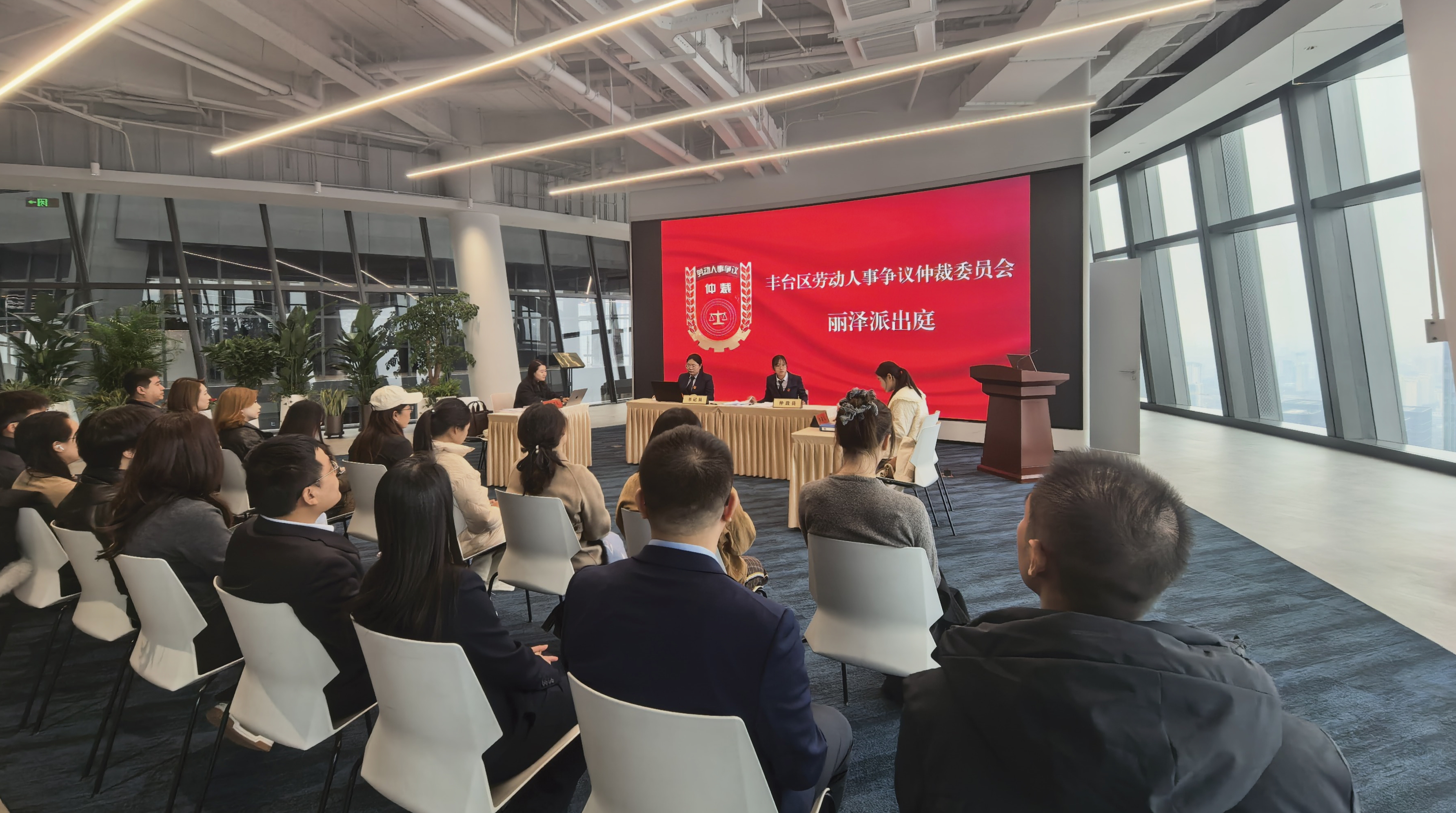 “在丽泽金融商务区里既能参加仲裁庭审,又能听普法讲座,还能现场咨询法律问题,仲裁服务真是既高效又便民!”近日,“丰台区劳动人事争议仲裁委员会丽泽派出庭”在北京国际法商融合示范区丽泽起步区正式成立,这是丰台区在新兴产业聚集区和重点功能区建立的首家仲裁派出庭。当天,现场开展了首次庭审及“法商融合促发展,仲心护航零距离”专项普法宣传活动,通过以案说法的形式,对工资支付、休息休假、劳动合同解除等常见劳动争议法律难点进行详细解析。
