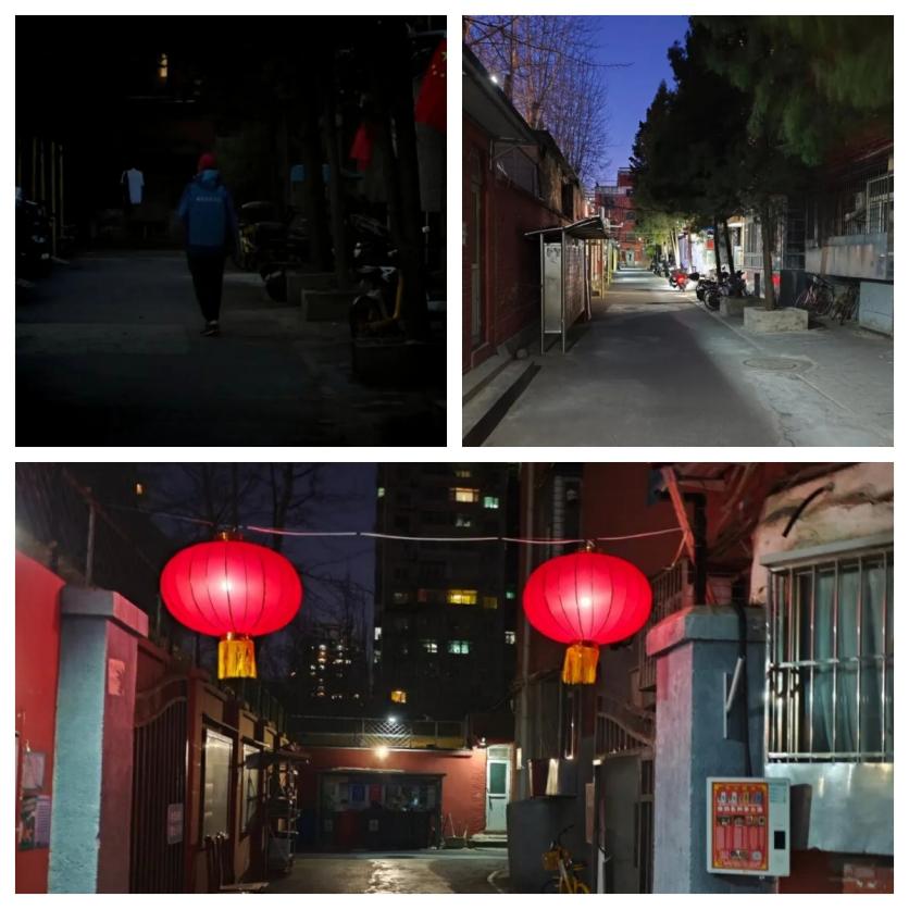 当昏暗的院子里亮起路灯,春节时挂上喜庆的红灯笼时;