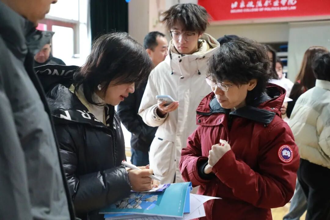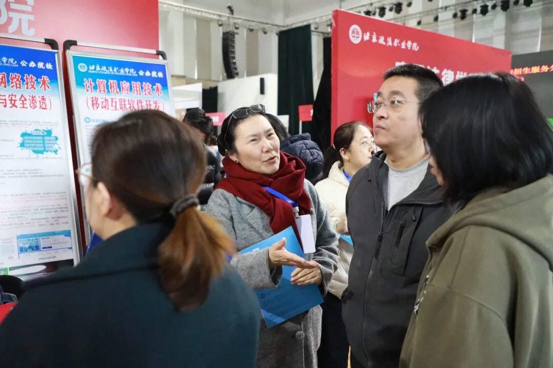 北京政法职业学院党委书记刘丽波,党委委员、副院长杜志勇,党委委员、副院长谢利苹来到现场指导工作,面对面与考生家长亲切交流。