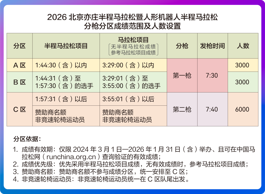 开赛脚步渐近,跑友们关心的分区分枪成绩范围以及人数设置正式揭晓!
