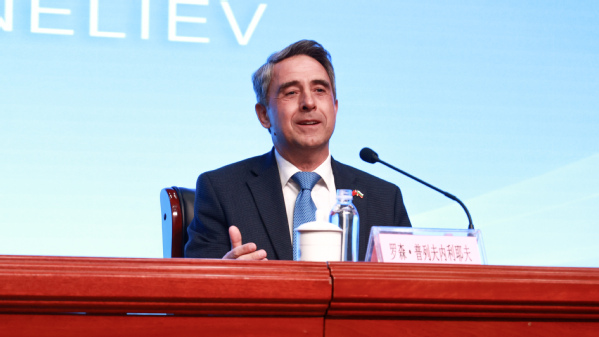 报告中,罗森·普列夫内利耶夫结合自身丰富的国际视野与政治阅历,围绕世界变局、文明互鉴、多边主义与青年使命展开深刻阐述。他深情回顾了中保两国的深厚友谊,强调保加利亚是世界上第二个承认中华人民共和国并与之建立外交关系的国家,2014年两国建立全面友好合作伙伴关系后,在“一带一路”框架下的合作结出丰硕成果。他高度赞赏中国的发展成就与外交理念,认为中国秉持的合作共赢、多边主义原则,是推动世界和平与发展的重要力量,并呼吁新时代青年要以开阔的全球视野和坚定的责任担当,成为文明对话的使者与和平发展的建设者,在百年未有之大变局中携手共创人类美好未来。