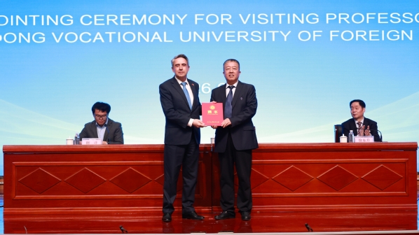 3月19日,保加利亚前总统罗森·普列夫内利耶夫(Rosen Plevneliev)访问山东外事职业大学期间,正式受聘为学校客座教授,并作题为“文明的对话与青年使命——在变局中共建中保友谊新未来”的精彩报告。学校党委书记徐东升,校长孙承武,常务校长刘先义,党委副书记、副校长李恒强,校长助理孙熙轩出席报告会。报告会由徐东升主持。