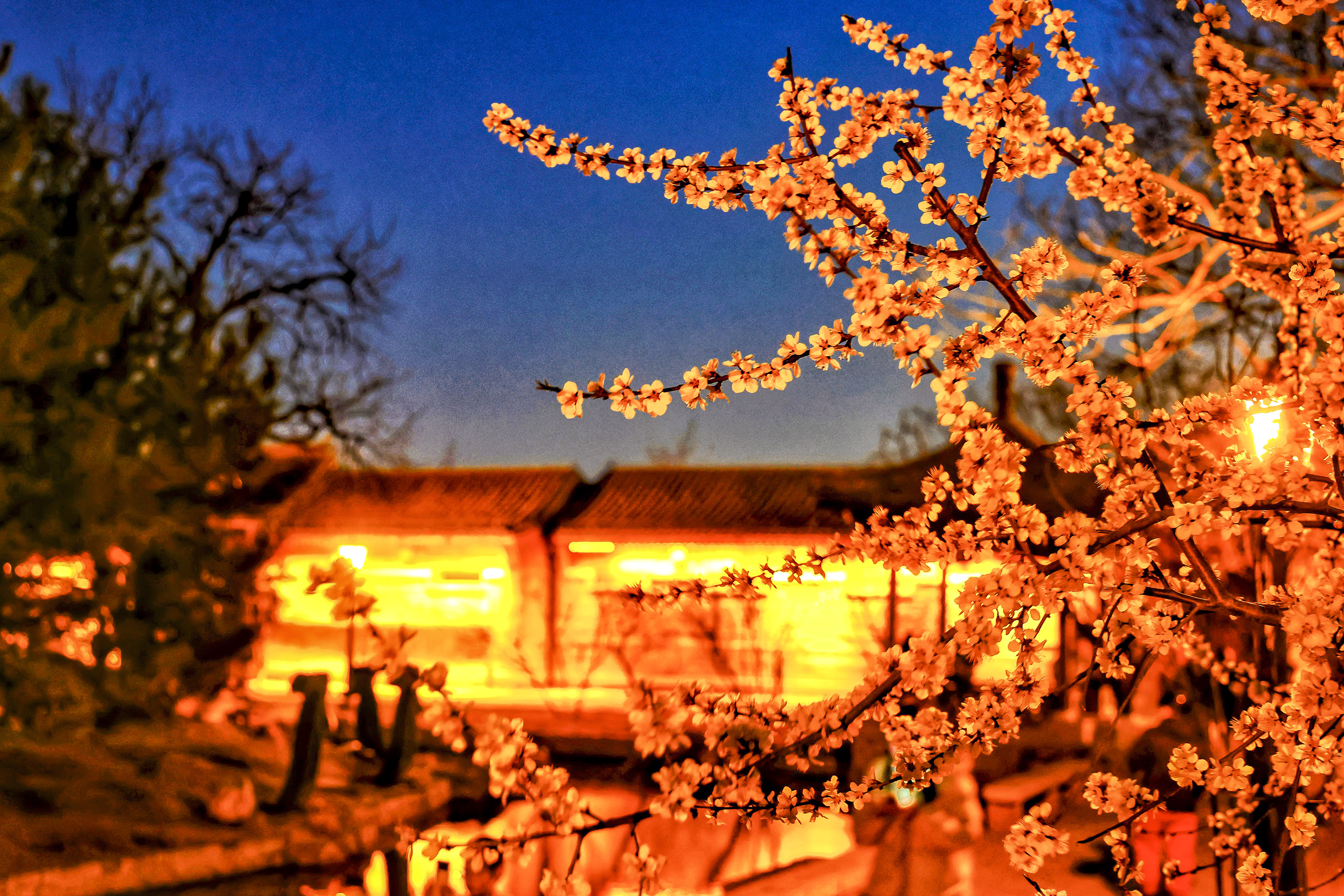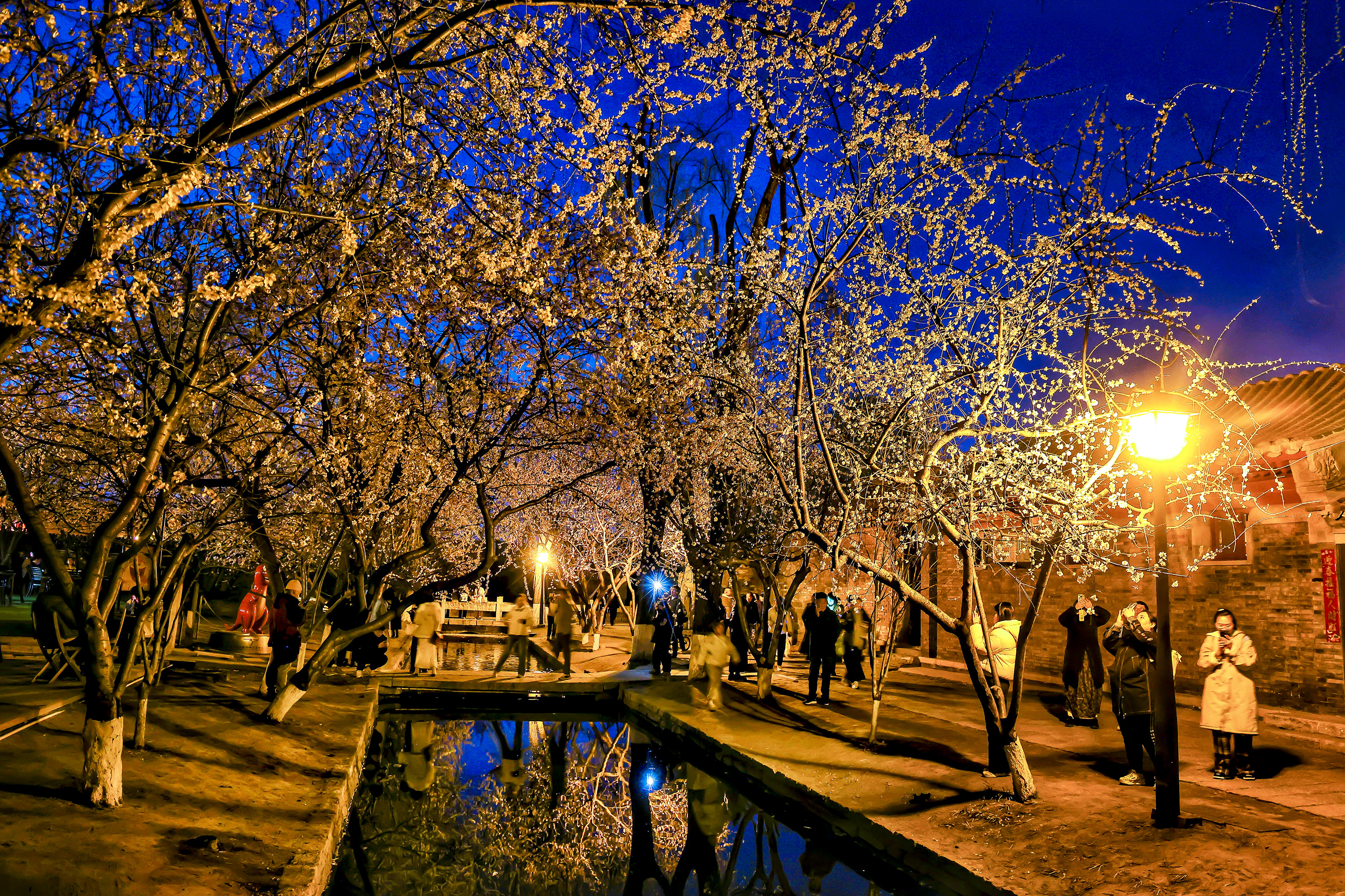 三里河的夜,桃花含露,玉兰凝香,蓝调映景,一步一景皆是温柔。沉醉在这闹中取静的春日秘境里,便不负此番夜赏春光的美好。
