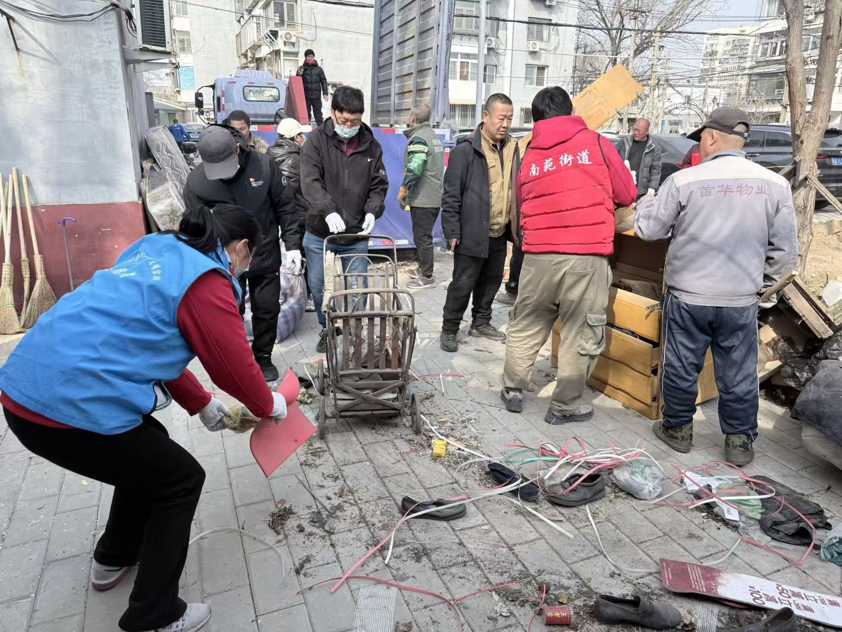 当天,一幕幕热火朝天的劳动场景,汇聚成了一个个精彩的“南苑瞬间”。无论是主干道旁,还是背街小巷;无论是新建小区,还是平房院落,到处可见忙碌的身影。街道相关负责人、社区工作者以及热心居民齐心协力,用汗水擦亮南苑文明的底色。