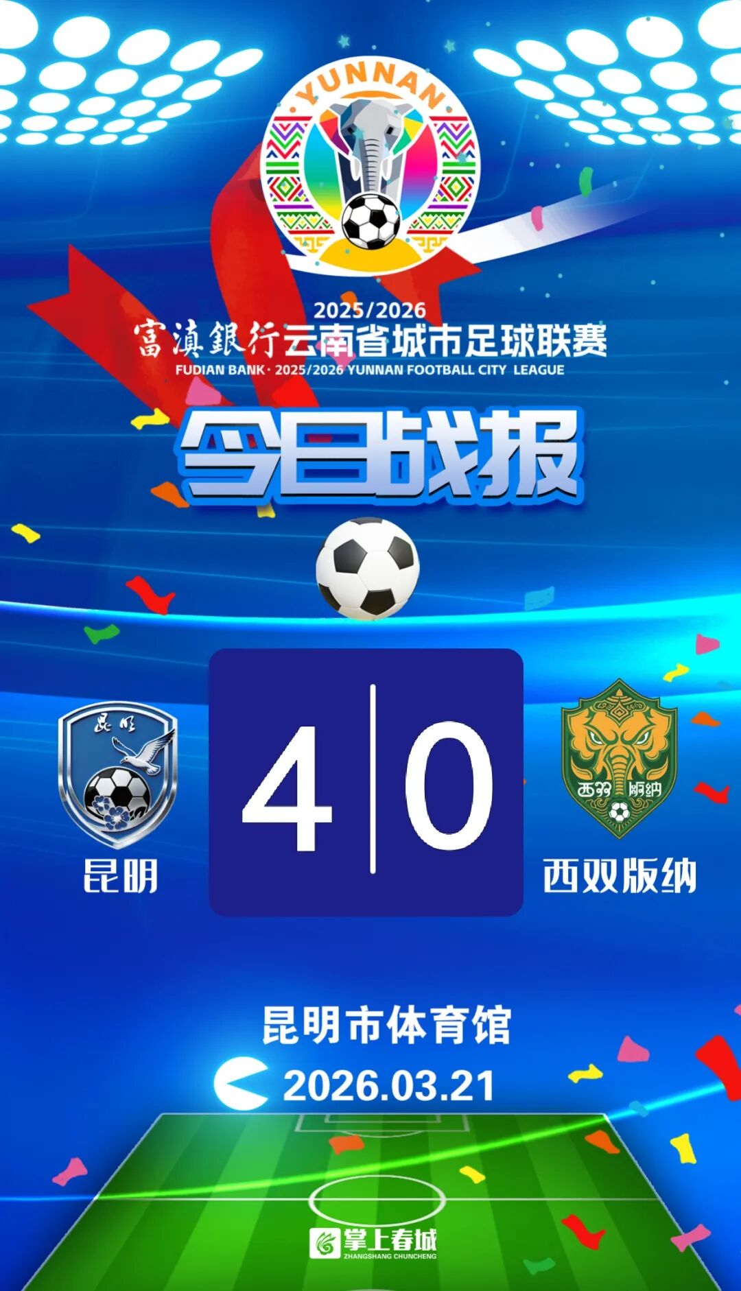 3月21日16点,滇超联赛第八轮开打,昆明队坐镇主场4比0战胜西双版纳队,迎来赛事七连胜。