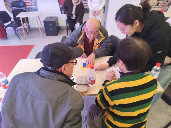 活动现场气氛热烈而温馨。一群来自汇丰及社会的志愿者与社区长辈们混合编队,通过“七巧板”趣味拼图与多元视角的知识竞答,两代人迅速打破了初见的拘谨。在涵盖“北京城市记忆”“网络热词”以及“传统文化”等主题的互动问答中,老人与志愿者们充分发挥各自的经验与知识优势,互相启发、通力协作。一次次会心的微笑、一阵阵爽朗的笑声,不仅消弭了年龄带来的陌生感,更让两代人的心紧紧相连,真正实现了两代人的“双向奔赴”。