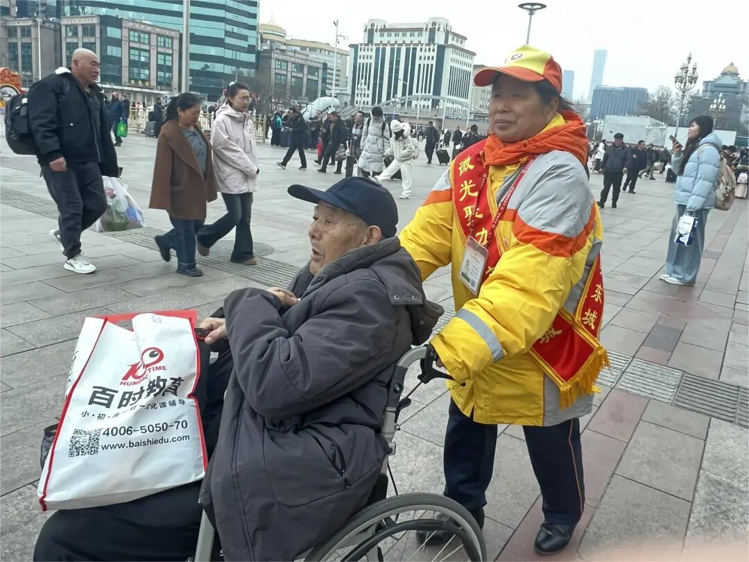 3月17日上午9时许,北京站出站口旁的通道里,一位乘坐轮椅的老人被“京铁爱心”服务组的工作人员缓缓推出。建国门中队文明引导员武自红早已等候在此,一场爱心护送就此接力——从火车站台到站前广场,再地铁绿色通道,老人被稳稳当当、全程细心护送。直至与地铁工作人员顺利交接,武自红才轻步返回“微光接力”行动服务岗,继续守候下一位需要帮助的旅客。