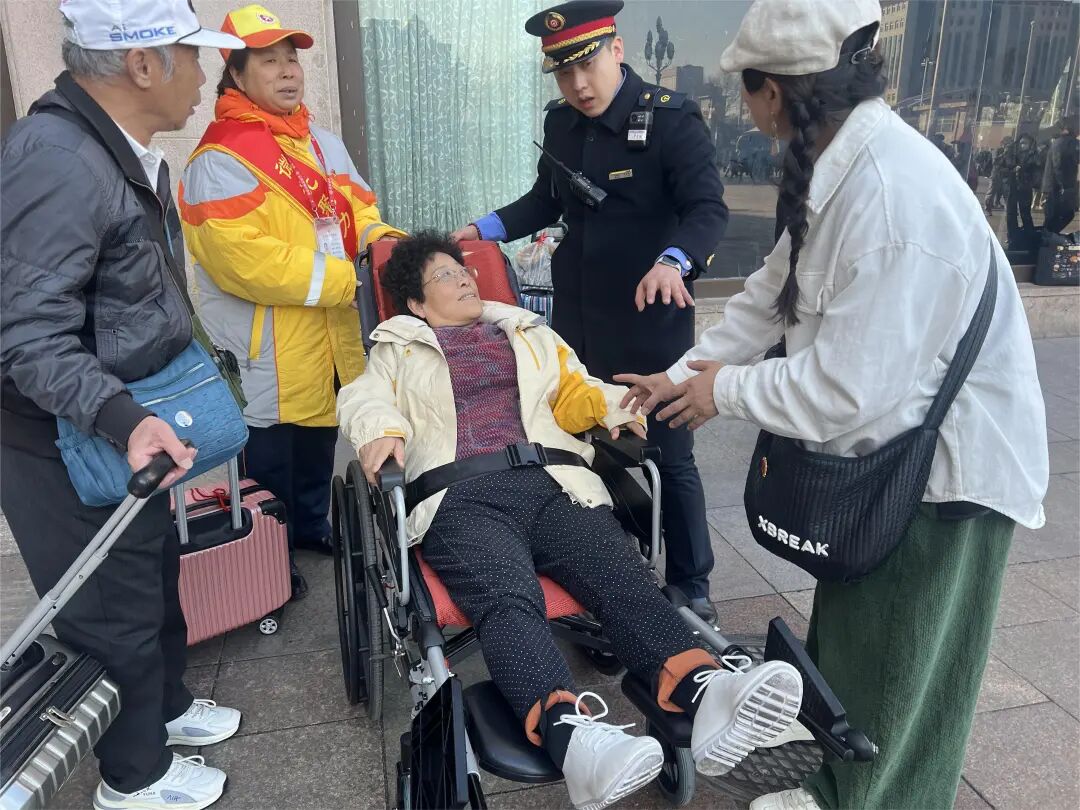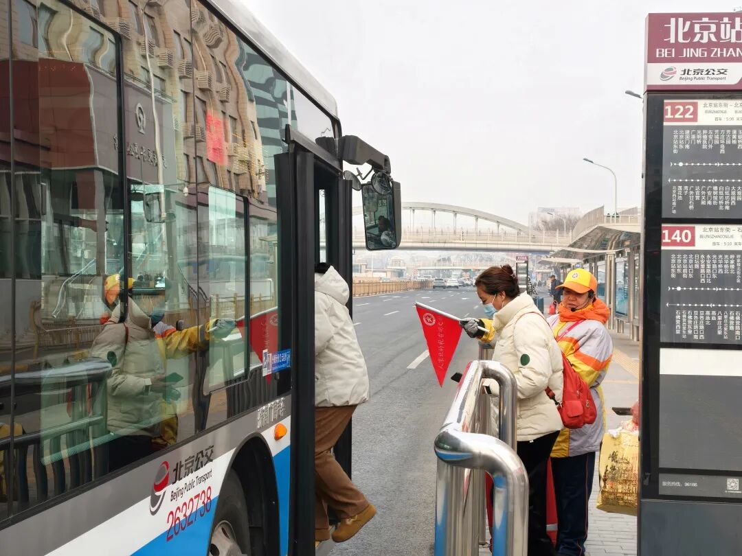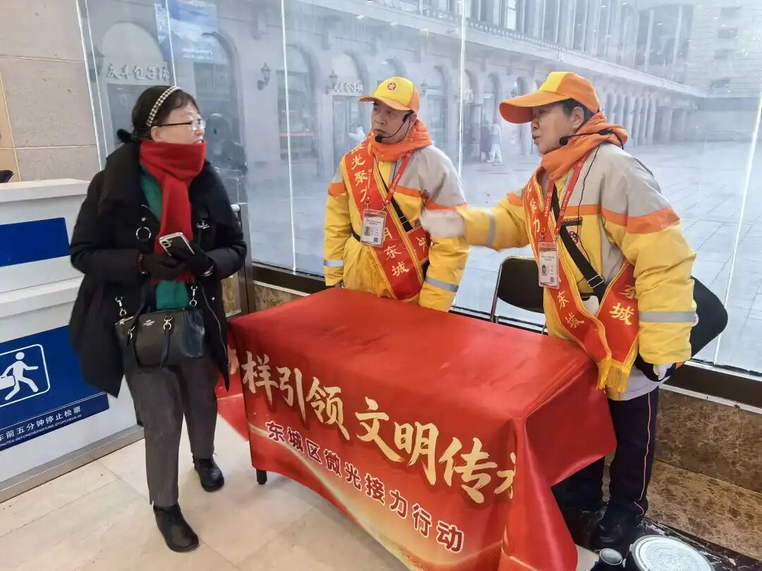 “服务岗于春节前夕正式设立。”公共文明引导员建国门中队队长周玉婷介绍道。北京站作为首都核心交通枢纽,往来八方、连接内外。刚刚过去的春运期间,东城区统筹力量、靠前服务,专门抽调40名骨干引导员驻站值守,实行全天候三班倒服务,全力保障枢纽通行安全有序。同时,将文明引导志愿服务延伸覆盖到站前广场、进出站口、地铁站口等关键点位,在早8点至10点、下午4点至6点客流高峰时段重点值守,为行动不便、乘坐轮椅的乘客提供全程换乘协助,为往来旅客搬运行李、答疑指路,用坚守筑牢旅途平安线。