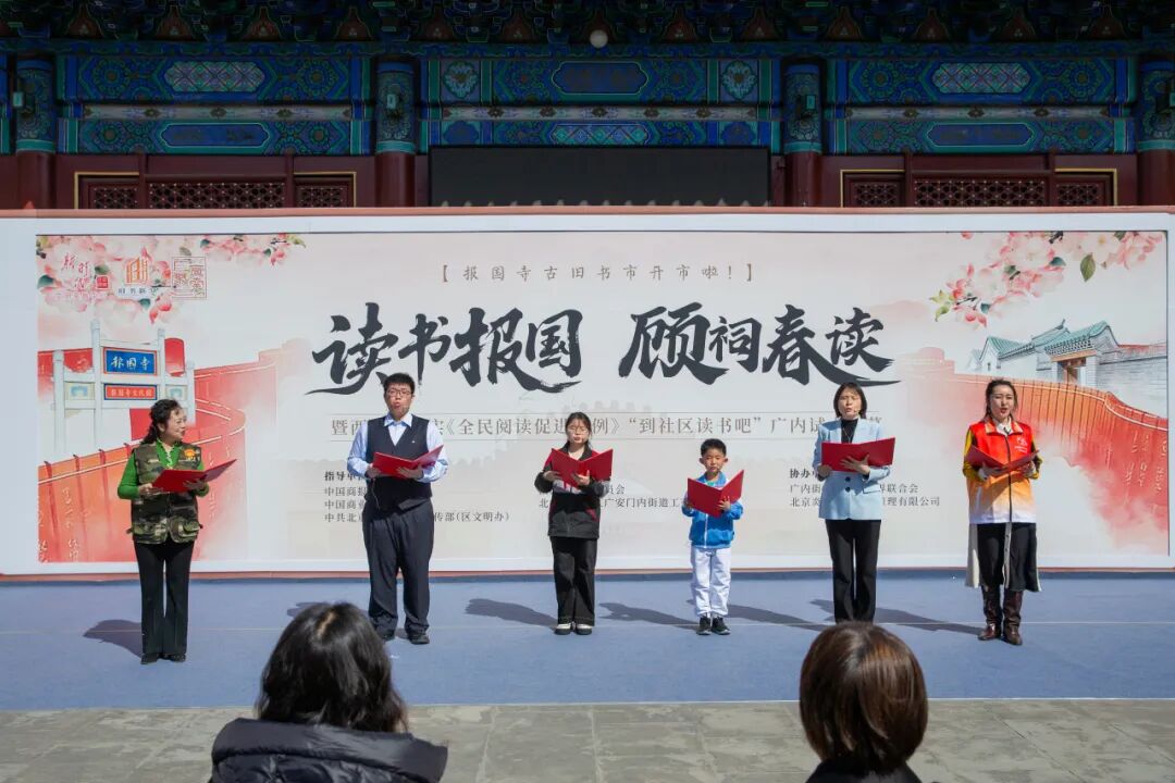 春和景明,古刹生香。3月22日,一场书香雅集在西城区报国寺悠然启幕,“读书报国 顾祠春读”活动在此举行,标志着作为西城区六张文化金名片之一的2026年“旧书新知 读书报国”报国寺古旧书市开市。活动现场同步发布了“到社区读书吧”全民阅读活动品牌,是推进《全民阅读促进条例》落地西城的生动体现。市委宣传部相关部门领导,西城区委常委、宣传部部长张晓家,区政协副主席彭秀颖,中国商报社社长、总编辑、报国寺管理委员会主任胡斌,中国外文局海豚出版社社长王磊,中国大百科全书出版社副总经理张弋辉出席活动。