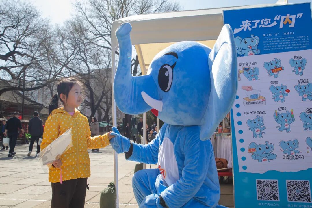 更显童趣的是,广内街道的文明推广员“小象安安”也穿梭于市集之间,它憨态可掬的身影吸引了众多大小朋友,俨然成为现场的“文化导游”,带领市民朋友们逛摊位、寻宝典、品非遗,在欢声笑语中深度体验这场传统文化与现代阅读生活交融的嘉年华。