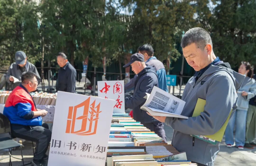 上午十时三十分,一声清越的锣鸣于报国寺三殿平台响起,2026年报国寺古旧书市敲锣开市,宣告这座百年古刹再度浸润于旧书新知的芬芳之中。礼成之后,一场由新就业群体代表、小学生代表、老兵合唱团代表、文明单位代表、统战人士代表、社区工作人员代表共同呈现的《读书报国 顾祠春读》诗歌朗诵以琅琅书声生动诠释“读书报国”的精神传承,将活动推向高潮。这既是全民阅读深厚群众基础的展现,也是新时代文明实践活动中多元主体参与、凝聚社区合力的生动缩影。