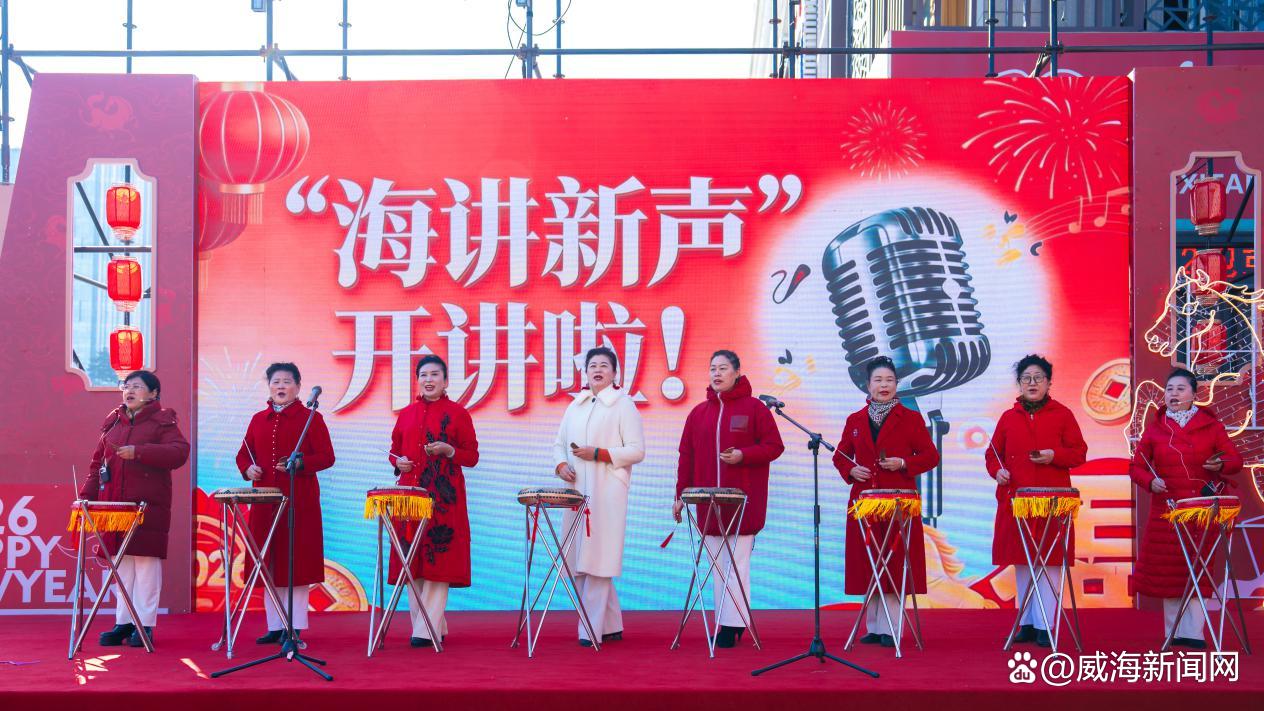 环翠区属相街“马上有喜市集”里,“海讲新声·百姓故事会”热闹开讲。京东大鼓《移风易俗树新风》用唱词传递文明理念,快板宣讲《唱“刮风”》用诵说讲述身边变迁,威海大鼓《幸福威海美名扬》用乡音唱出城市风貌。朗朗上口的唱词、熟悉亲切的乡音、真实可感的身边事,让群众在看节目、听故事、答问题中逐步实现从“围观”到“共鸣”的转变。
