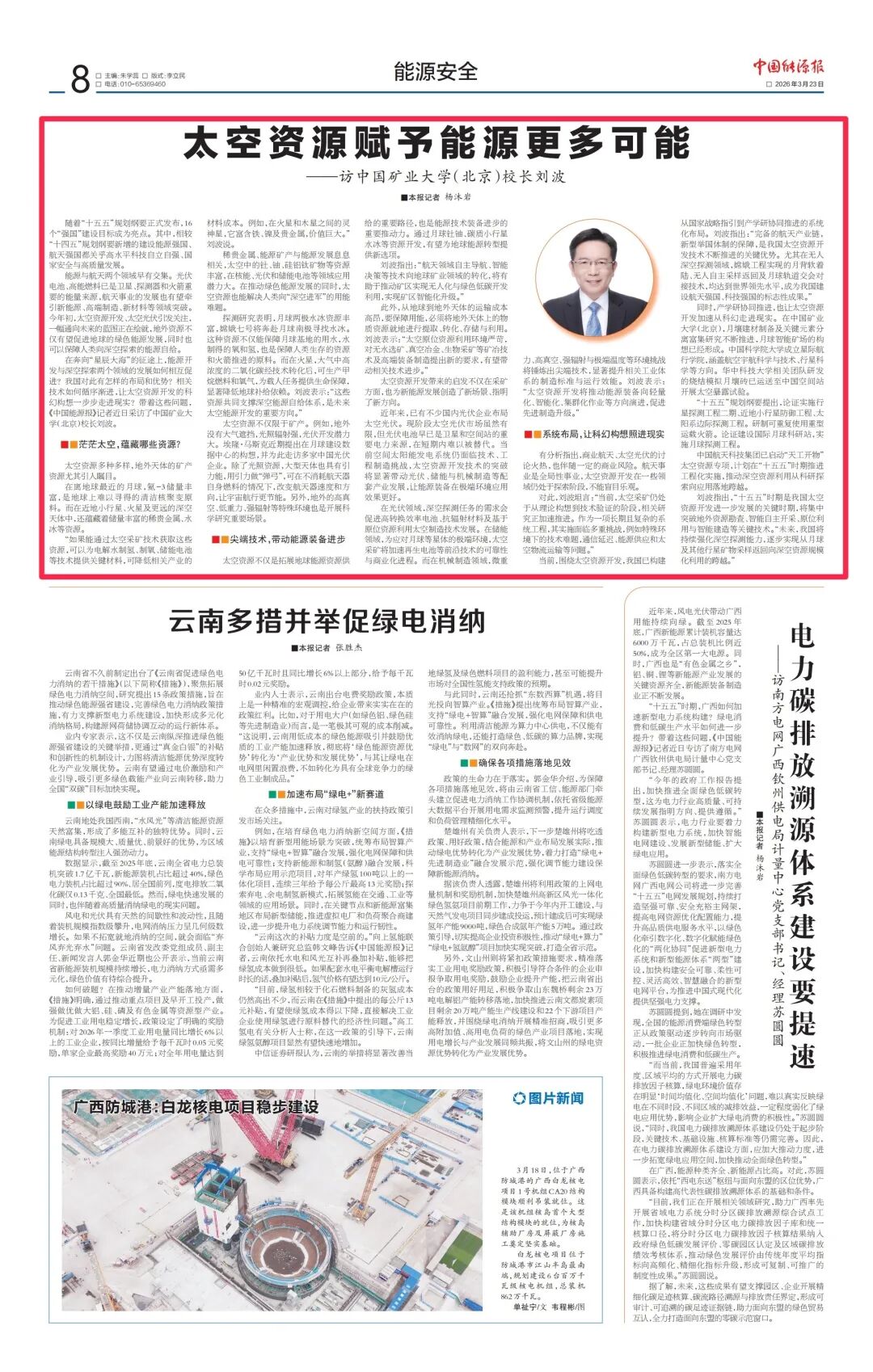 能源与航天深度交织,太空资源开发为绿色能源与深空探索注入新动能。我校校长刘波接受《中国能源报》专访,系统解析太空资源禀赋、技术突破路径及国家战略布局。
