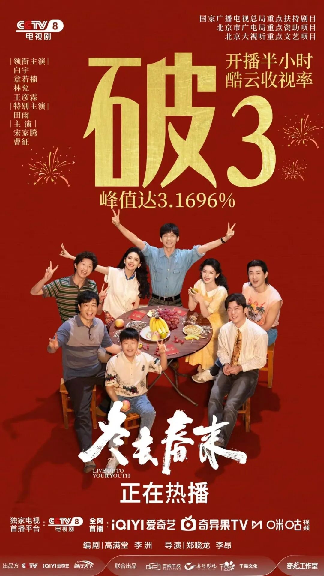 电视剧《冬去春来》已于3月22日首播。开播当日,该剧取得七分钟破2、半个小时破3的优异成绩,最高峰值达3.1696%,成为2026年CCTV-8收视率最快破3的电视剧。