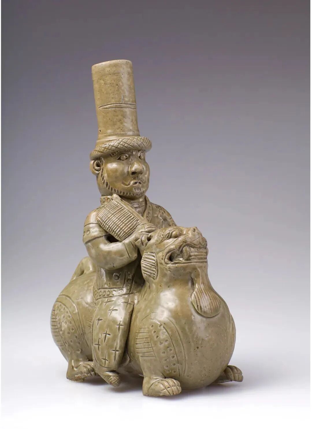 西晋青瓷胡人骑狮器