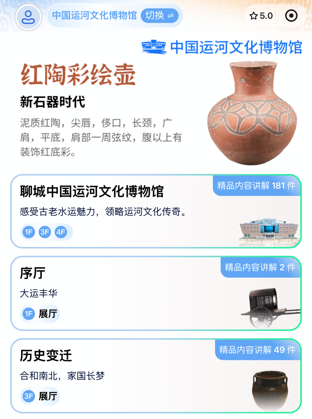 在聊城中国运河文化博物馆,游客可以通过“翼讲解”小程序自主选择讲解内容,拍照获取文物介绍,语音提问、实时互动,让黑釉双系罐的兔毫纹与高山流水之韵,在掌中触手可及。