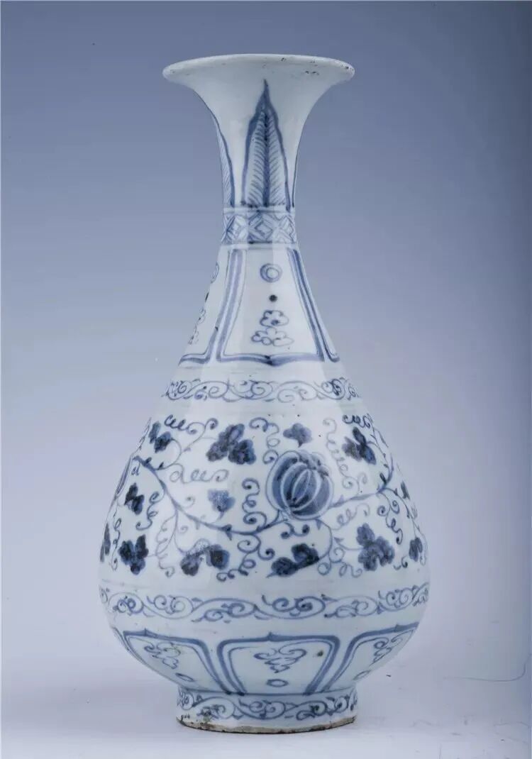 瓶身绘制的缠枝花卉以荷叶纹、蕉叶纹、下垂如意纹组成,均是元代青花流行装饰纹样,说明应为元代青花瓷成熟期的代表,由于山东地区发现元青花颇为少见,故而十分珍贵。中国精湛的制瓷工艺与西方图案风格在此交融,催生伟大作品,给中国制瓷业带来全新文化特色。