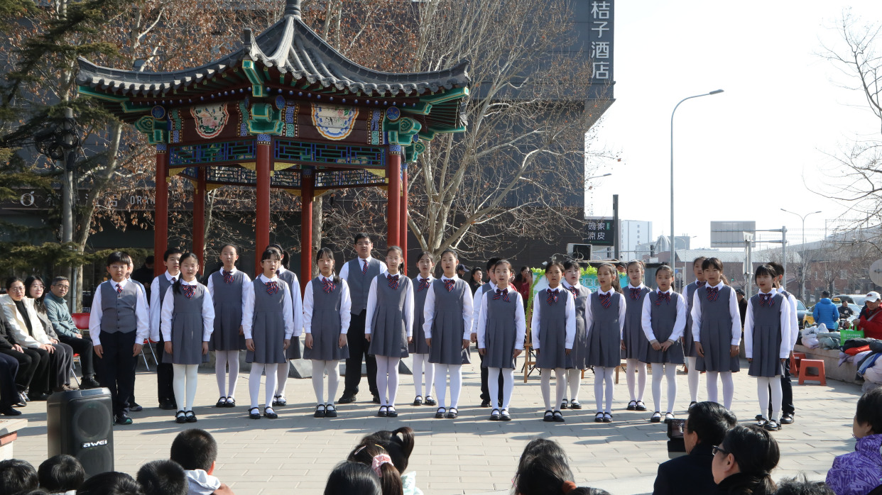 3月20日,春分节气与农历二月二“龙抬头”相遇。北京市丰台区第五小学“萃星苑”乐学公园春分诗歌音乐游园会在丰台区正阳大街文化主题公园举办。这场将校园活动搬进社区公园的春日雅集,以诗乐为媒,让学校、家庭与社区在春风中紧紧相拥。