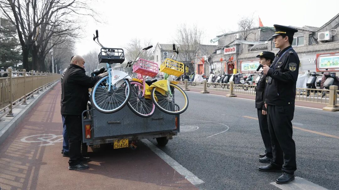 媒体曝光后,总队第一时间联动西城区城管委、什刹海派出所、什刹海景区管理处等单位,对什刹海景区周边、地安门外大街,当日即清运什刹海周边违规投放车辆23辆。