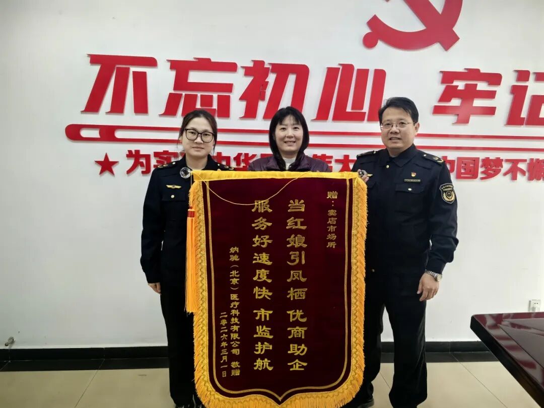 为表达谢意,企业特意为窦店所送来锦旗——“当红娘引凤栖 优商助企,服务好速度快 市监护航”,既是对市场监管部门服务工作的高度认可,更是一份沉甸甸的鼓励与鞭策。