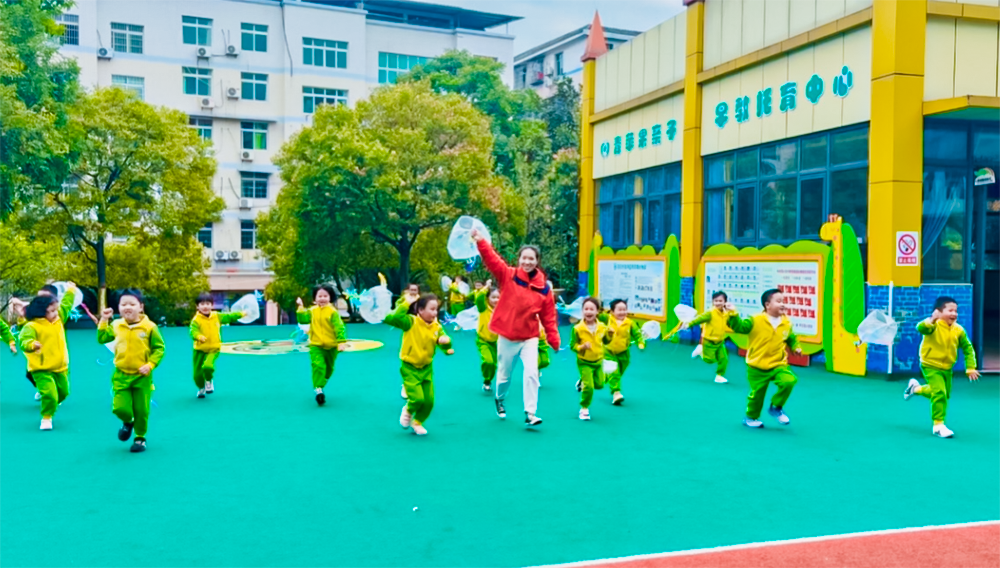 在南充市高坪区青苹果幼稚园宽敞开阔的户外操场上,呼吸大自然的清新,仰脸望着湛蓝的天空,让水母纸鸢随着小小身体飞出春日轨迹。