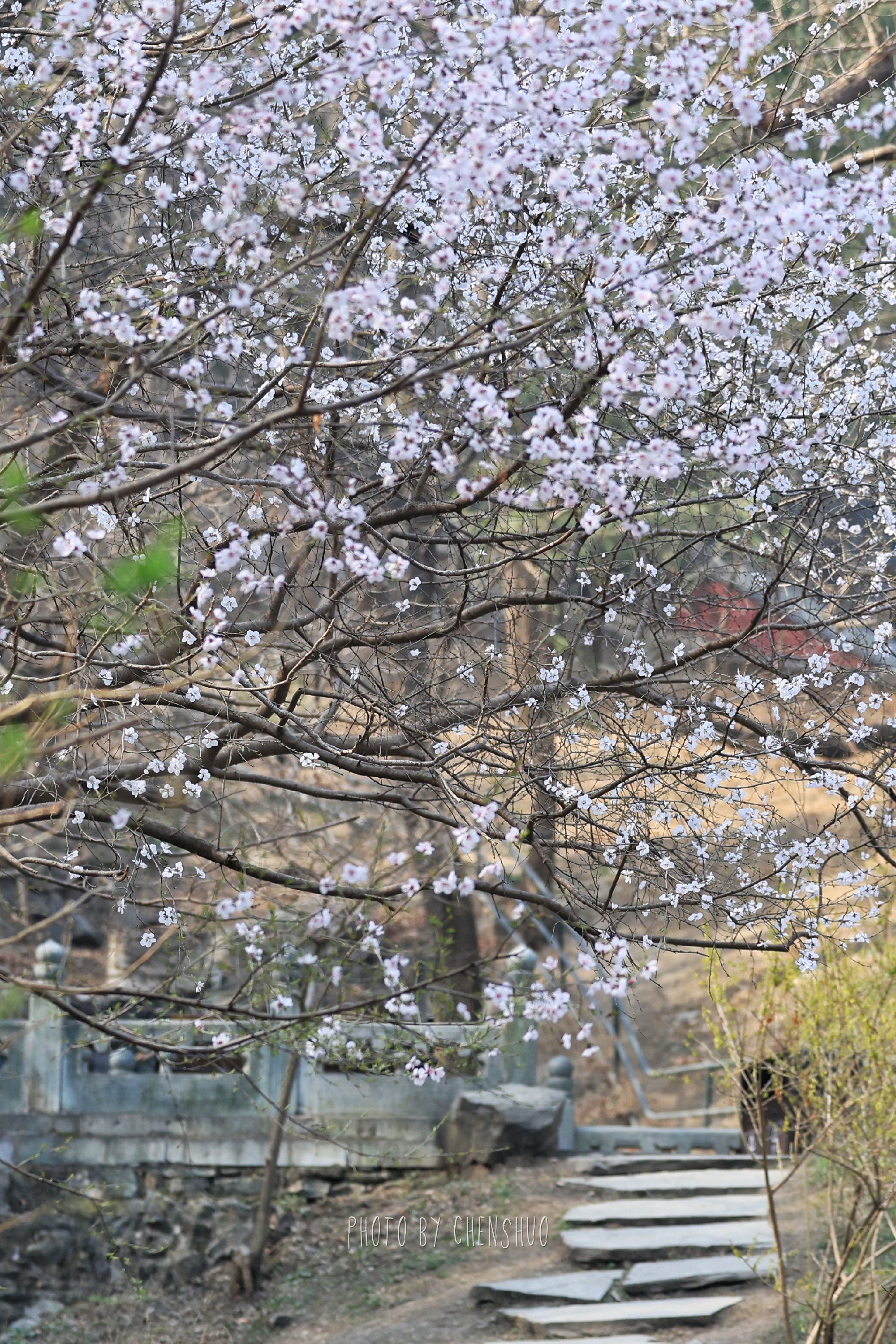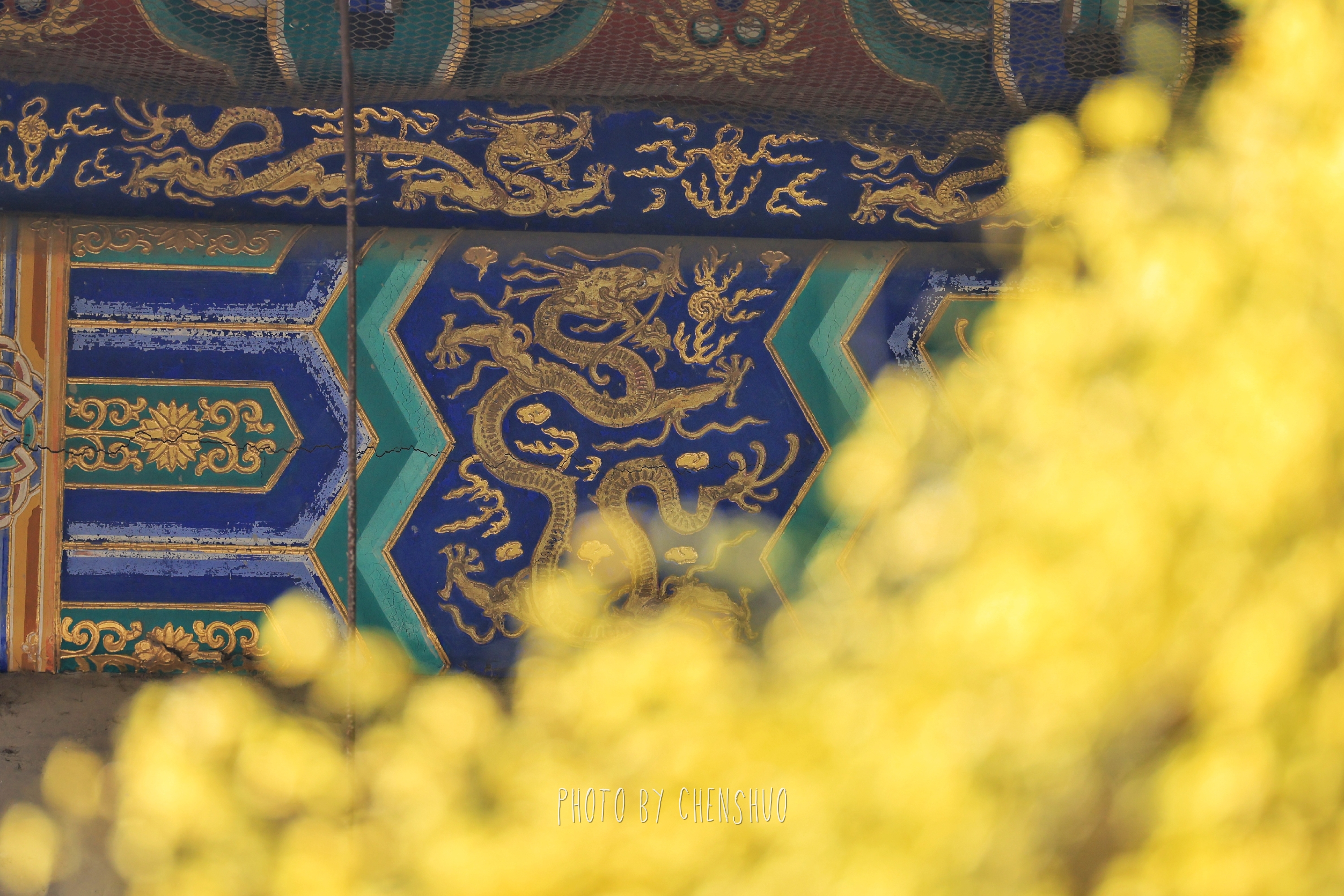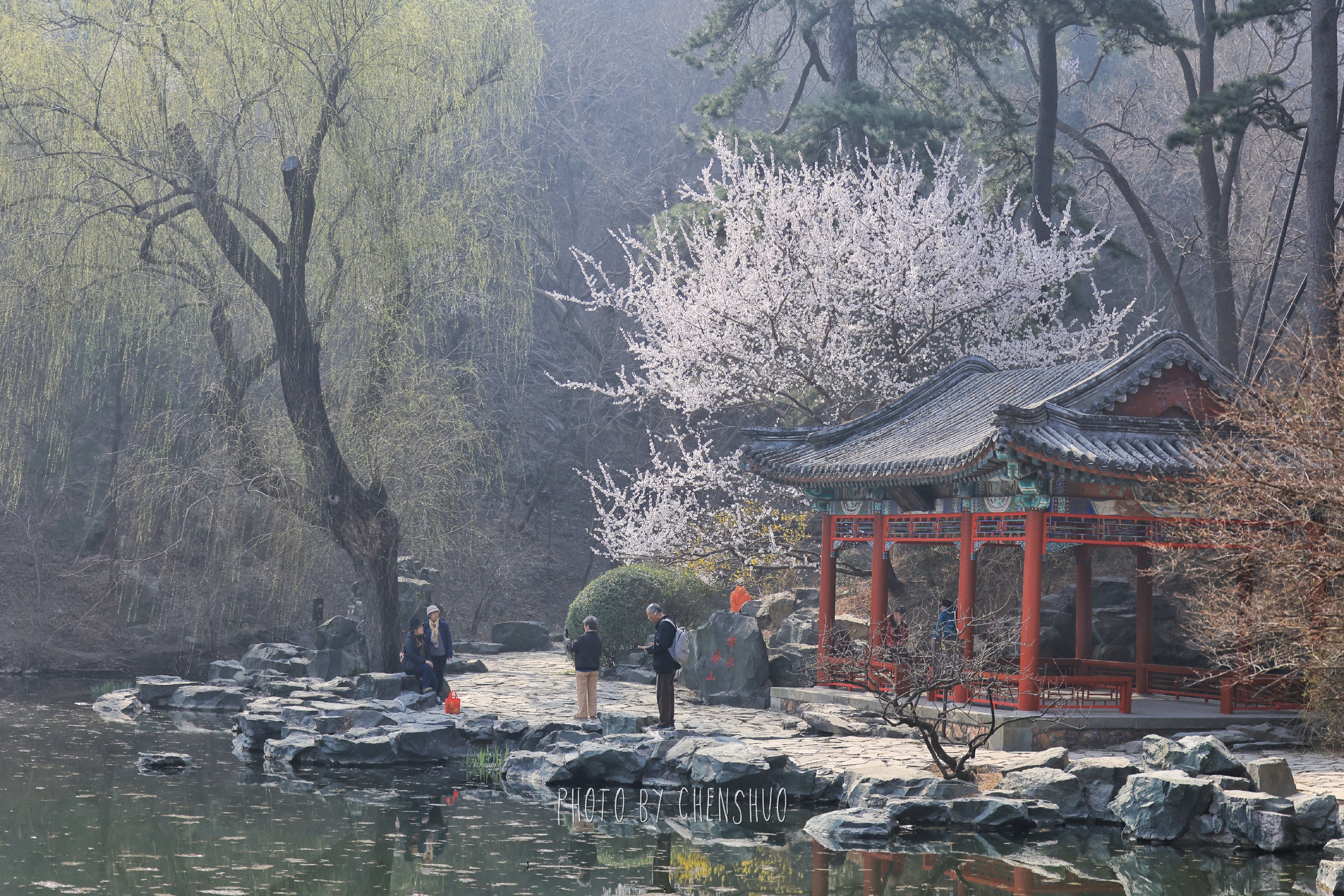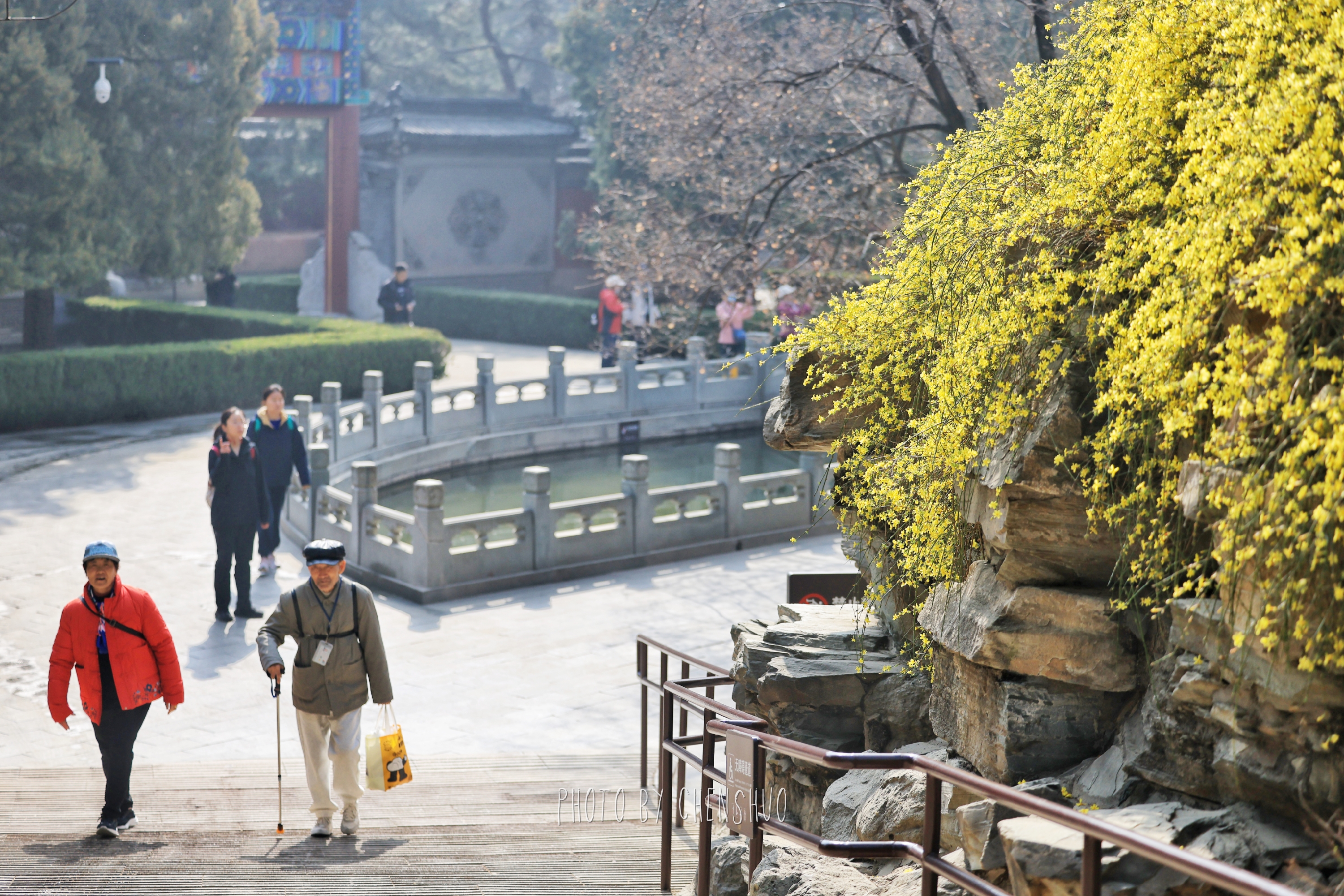 解锁香山春意!迎春金黄映古殿,山桃粉艳染碧湖
