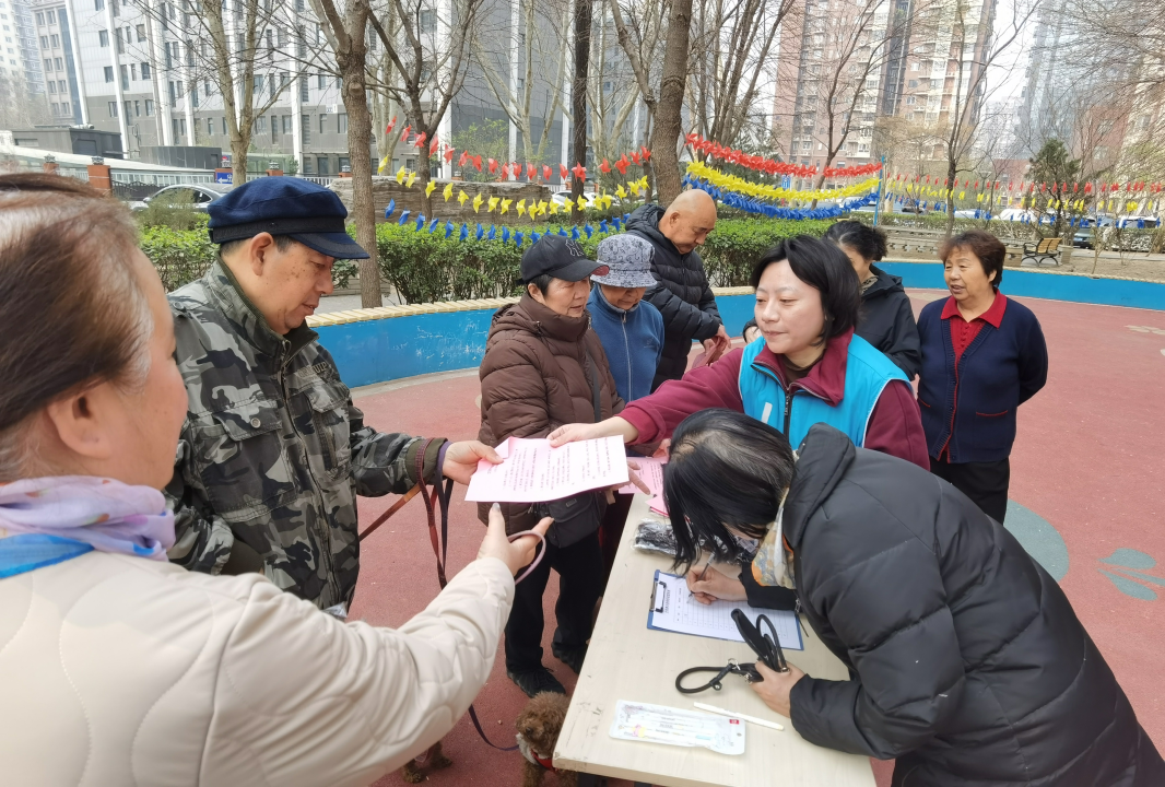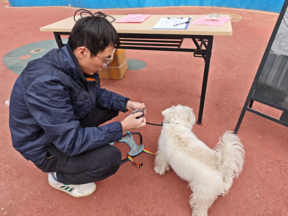 活动中,社区工作人员在方庄南路18号院童趣园小广场搭建宣传台,向过往居民发放文明养犬倡议书,围绕养犬登记流程、疫苗接种要求、遛犬牵绳规范、宠物粪便清理等重点内容进行细致讲解,现场解答居民关于养犬的各类疑问。在为居民免费发放宠物牵引绳的同时,工作人员同步开展宠物信息登记工作,便于后续为居民提供更具针对性的服务。本次活动累计发放倡议书100余份、宠物牵引绳50余条,覆盖辖区居民百余户。