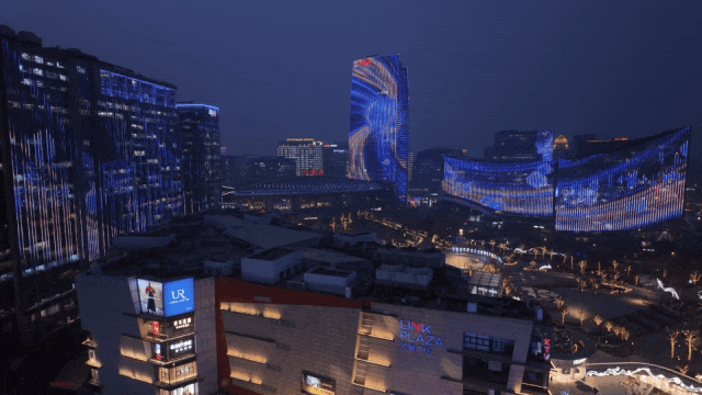 灯光秀在“小关·智启新篇”中开场。只见小关携带着绚丽的科技数据流从楼体中奔涌而出,瞬间化身“纳米级向导”,带领现场观众在数字世界中尽情遨游。光影流转间,仿佛能触摸到前沿科技的脉搏。最终,万千数字洪流汇聚成海淀“双螺旋”,以昂扬向上之势,书写出科技无界、未来可期的壮阔愿景。