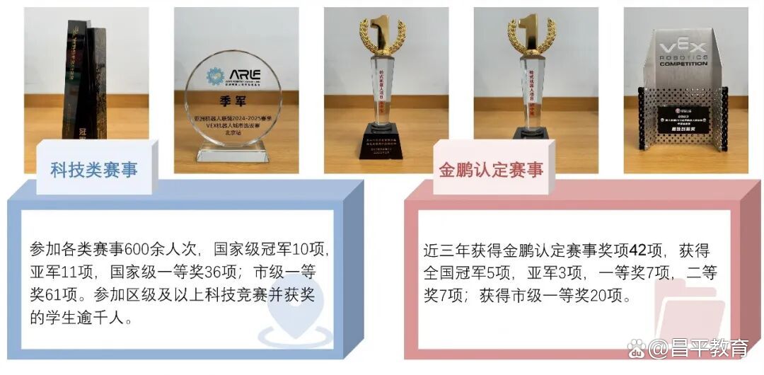 在实践育人与成果转化方面,联盟着力推动学生从课堂走向赛场、从校园走向世界,构建全方位实践育人体系。联盟年均举办各类科技赛事30场,引导百名学生在实战中锤炼科创技能、磨砺意志品质。近3年,联盟学子累计600余人次斩获市级以上奖项,其中包括国家级冠军10项、亚军11项,国家级一等奖36项,市级一等奖61项,彰显了联盟拔尖创新人才培养的扎实成效。此外,联盟常态化开展科技大讲堂、项目式研学等活动,推动小初高科创教育贯通衔接,形成了梯队式创新人才培养格局。依托突出的办学成效,昌平一中集团先后获评“中国科普联盟基地校”“全国人工智能教育实验校”,连续四年被中国科协评为“全国人工智能特色活动单位”,被团中央授予“小平科技创新实验室”称号,成为联盟发展的坚实引领者。