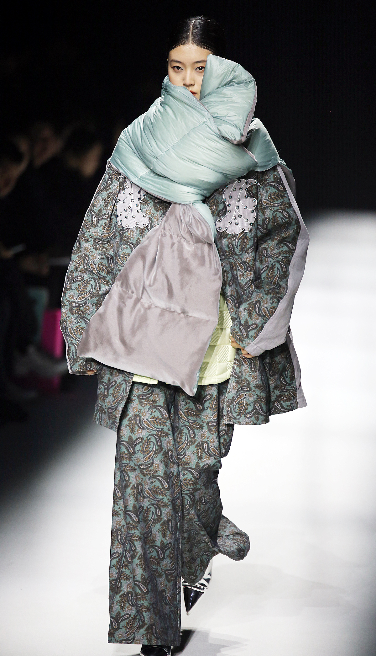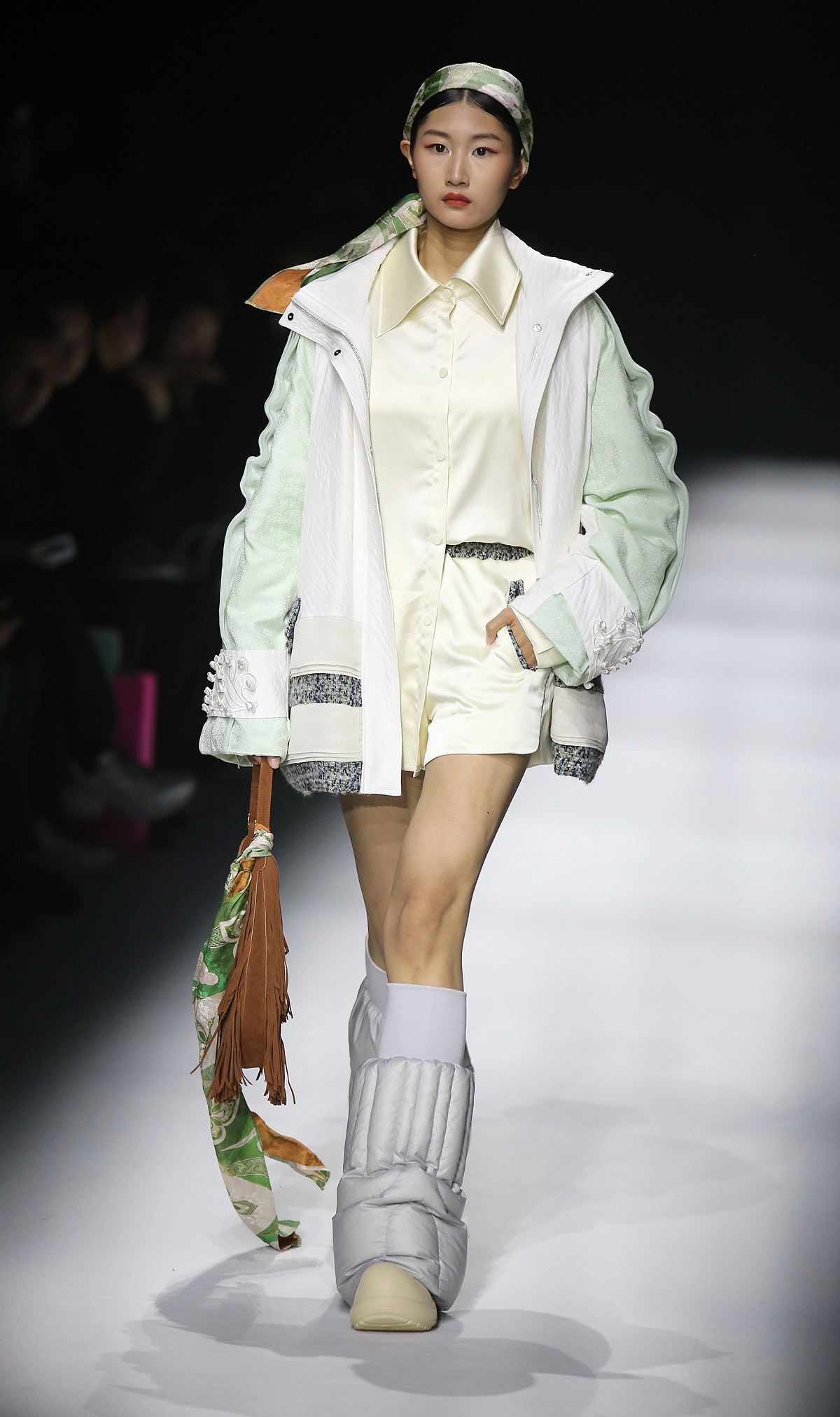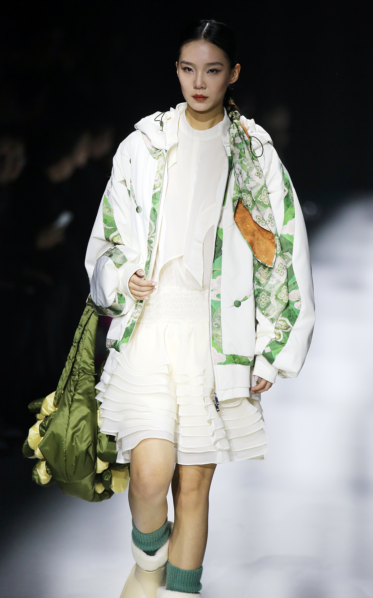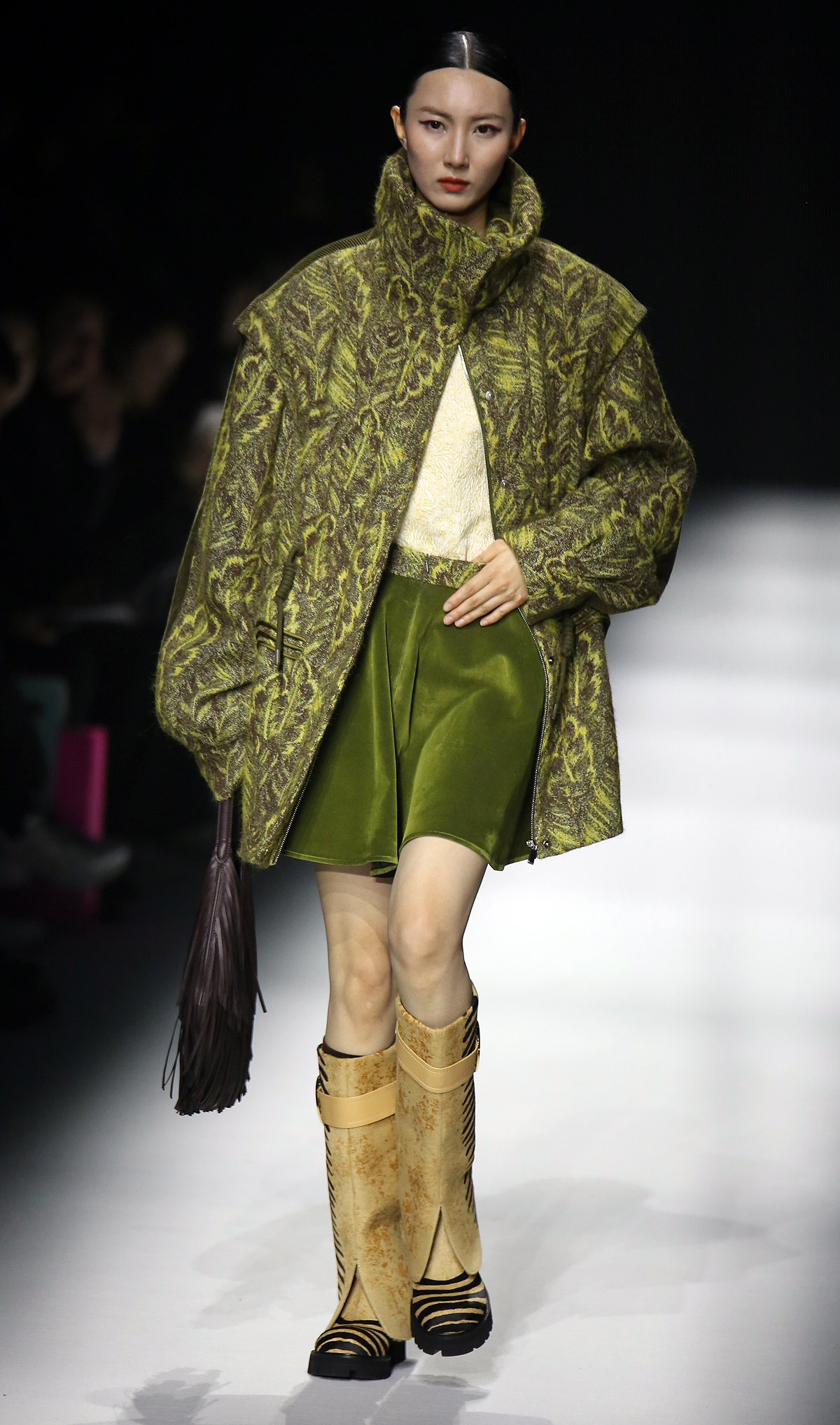 3月24日,设计师刘伟霞携新作登陆2026年中国国际时装周(春季),发布全新系列「漠境未来」。这是一场以敦煌为起点、以未来为指向的时装叙事,设计师以时空为衣,将古老文明的瑰丽底色,织入当代时装的先锋语言。让非遗纹样在时装之上新生,让敦煌风骨,走向未来时尚。图为模特精彩演绎设计师刘伟霞的作品。