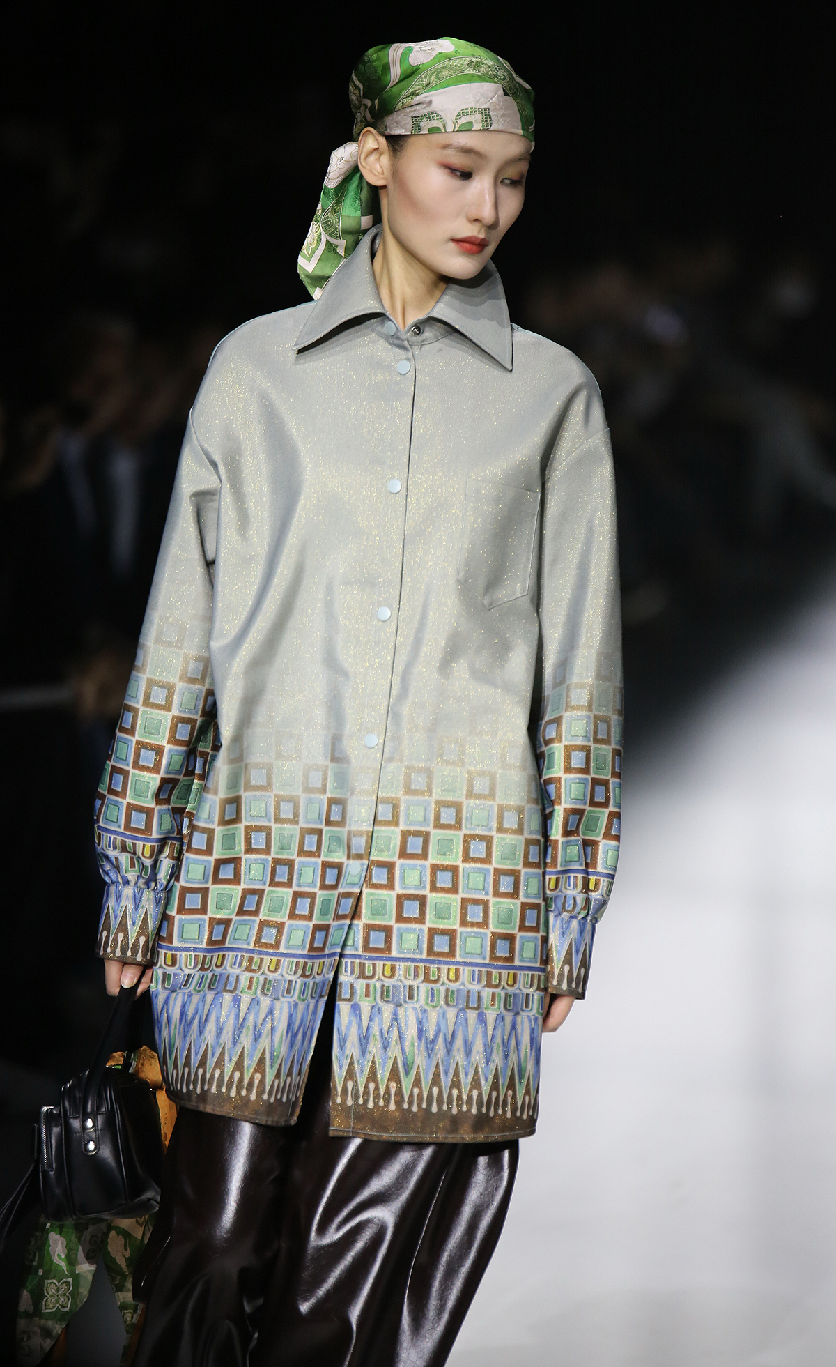3月24日,设计师刘伟霞携新作登陆2026年中国国际时装周(春季),发布全新系列【漠境未来】。这是一场以敦煌为起点、以未来为指向的时装叙事,设计师以时空为衣,将古老文明的瑰丽底色,织入当代时装的先锋语言。让非遗纹样在时装之上新生,让敦煌风骨,走向未来时尚。图为模特精彩演绎设计师刘伟霞的作品。