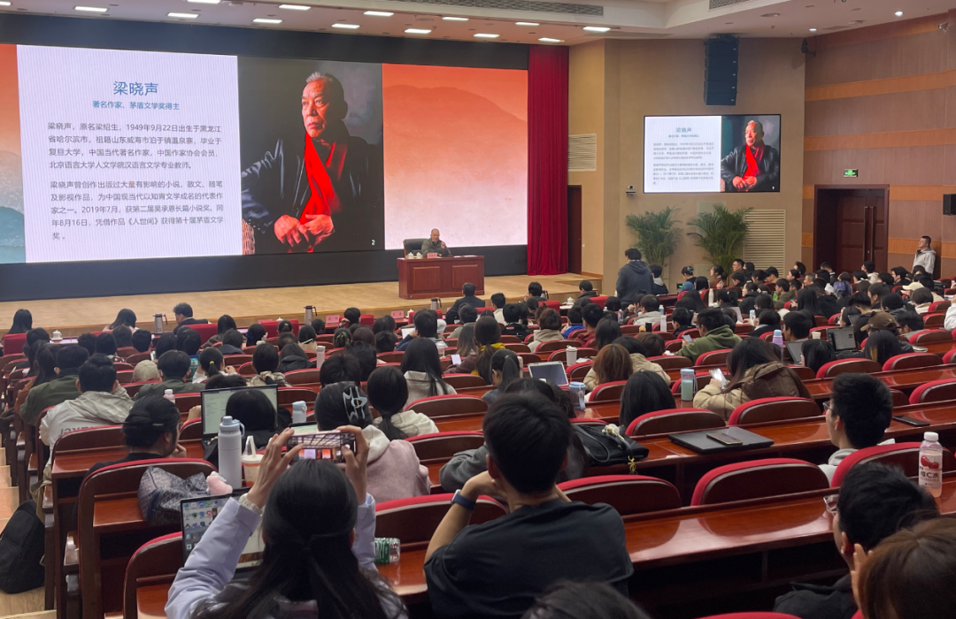 中国科学院大学雁栖湖校区国际会议中心报告厅座无虚席,就连过道也站满了慕名而来的学子。日前,著名作家、第十届茅盾文学奖得主、北京语言大学教授梁晓声现身“人居:科学与艺术大讲堂”,带来题为“我的文学创作汇报”的讲座。他结合五十余载笔耕生涯,讲述创作心路,分享文学创作的初心与方法,用文字的温度与力量,让在场学子深受触动、倍感启发。