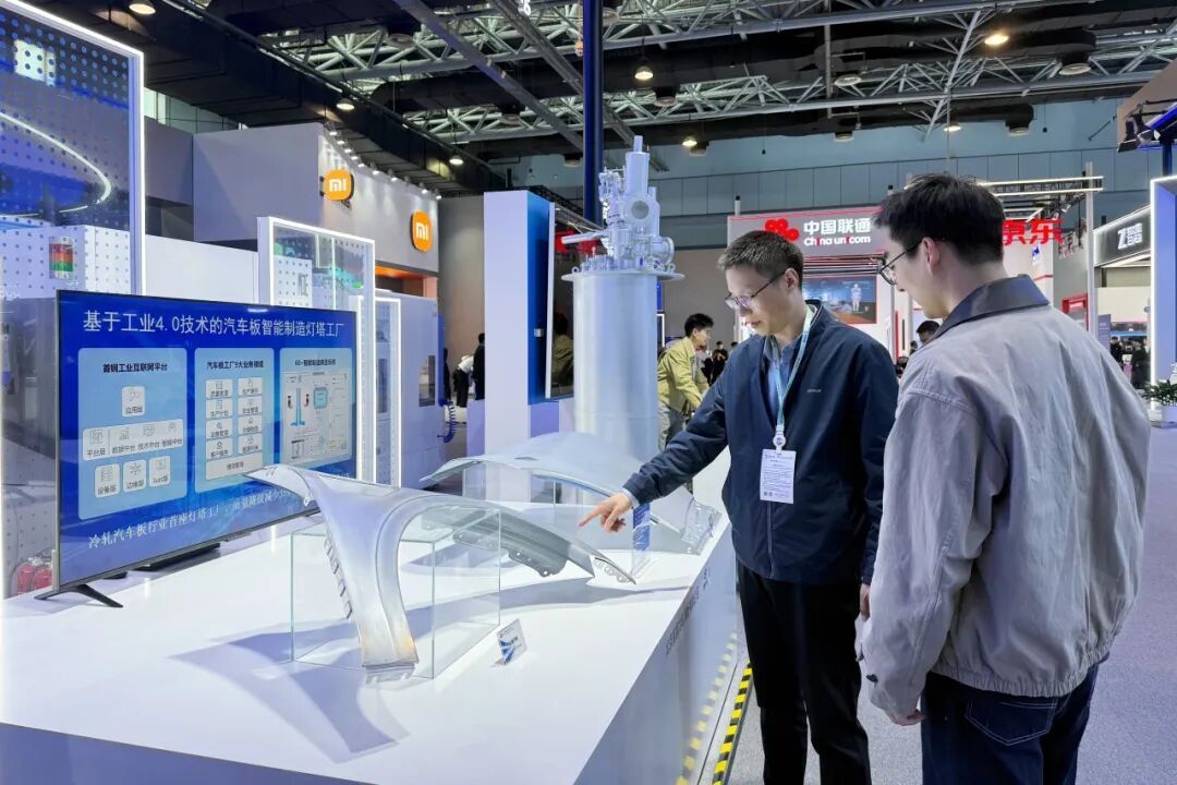 北京首钢冷轧薄板有限公司展出的是智能制造灯塔工厂展示视频和汽车板冲压部件。“首钢冷轧是全球冷轧汽车板行业首座灯塔工厂,应用工业4.0技术赋能产品质量提升。这是我们生产的材料冲压成的车门板和翼子板,应用于许多新能源车型中。”公司首席工程师李凤惠介绍。中科星图股份有限公司分别展出“星眼”星座、“洞察者”平台和“天箭”“天星”电子系统。理想汽车i6、理想AI眼镜Livis等产品以硬核科技实力,为用户带来全新体验。