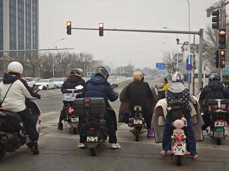 晚高峰的通州万达路口交通组织繁忙但有序,在记者采访的近半小时内,粗略统计170辆通过的电动自行车中,有81%的市民都佩戴了头盔,比起2022年同一路口的8%的佩戴率大大提升。这其中,外卖骑手的头盔佩戴率是百分之百。