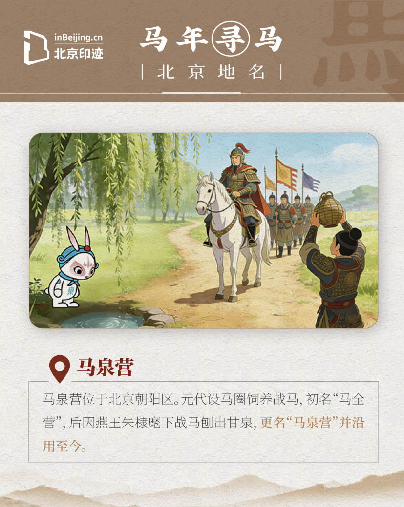 2026年恰逢丙午马年,“马”所蕴含的奋进向上的精神,早已深度融入北京的城市肌理。诸多含“马”的地名是历史活化石,亦见证城市更新。“北京印迹”平台借此契机,带领大家一起寻踪,探索北京地名文脉,见证城市更新成果。