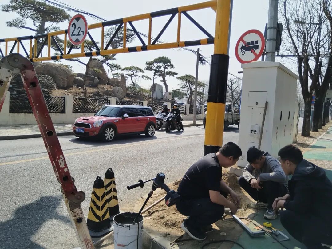 经勘察,断裂原因是限高杆立柱基础桩不牢固,导致地基沉降,受力不均引发横梁断裂。查明“病根”后,施工人员随即对破损横梁进行切割拆除,重新调整高度进行焊接,并对不牢固的基础桩进行了加固处理。经过紧张有序的抢修,限高杆成功加固,安全隐患彻底消除,居民的出行安全得到了有力保障。