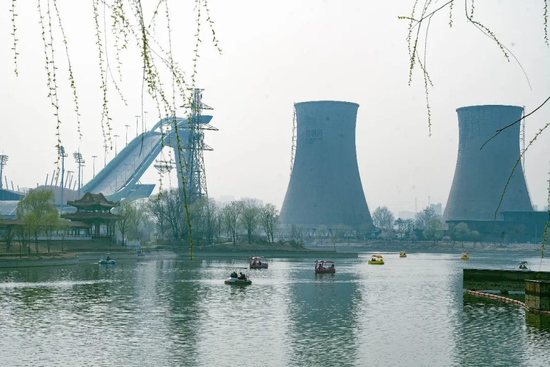 近处则是首钢园标志性的冷却塔和大跳台