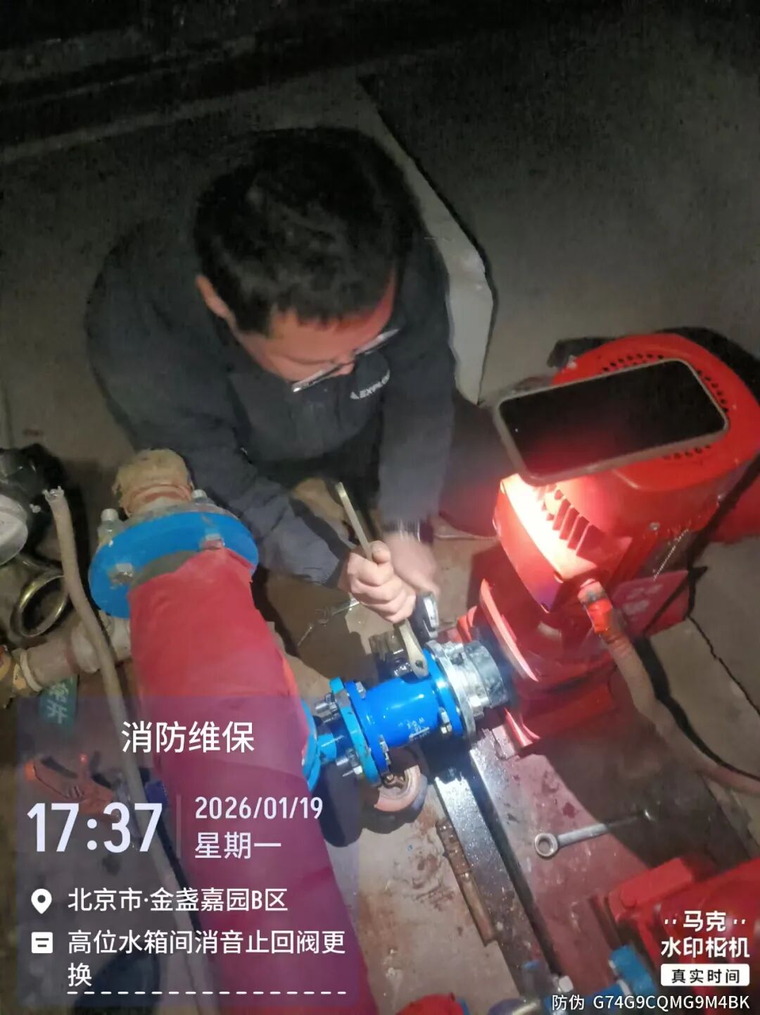 接到诉求后,金盏嘉园第一社区工作人员会同金盏物业工作人员第一时间赶到现场,对楼顶消防水泵进行检查。经排查发现,由于水箱水位下降,水泵在自动补水启动过程中产生瞬时撞击声,是噪音的主要来源。