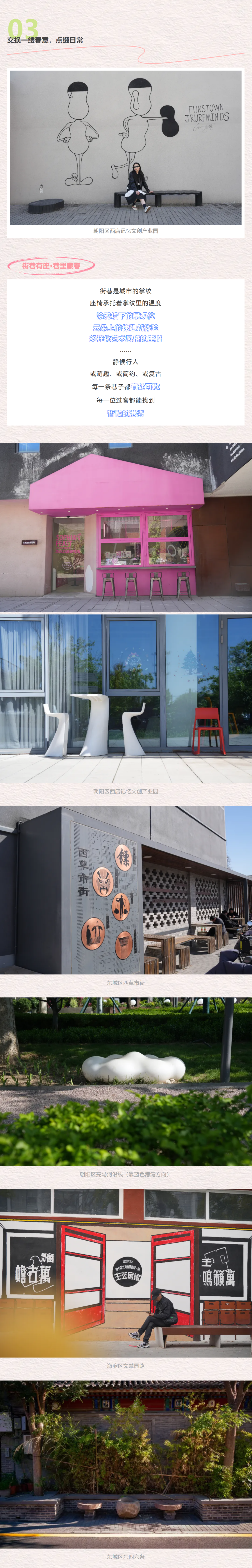 春日里,万物都在“分享”生机,您知道吗?胡同深处藏着春天的密码,灰墙胡同叠新绿,风格多样的座椅、路灯、花箱等仿佛迎来了“绽放”......邀您为时光按下暂停键,拐进胡同,用喝杯咖啡的时间“交换”专属于当下的灿烂春天。