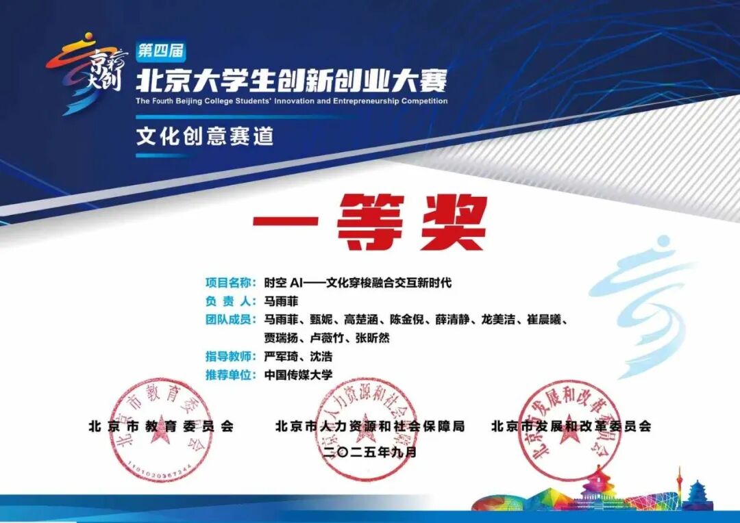 爱及比特传媒的“时空AI”项目,无疑是其众多成果中的璀璨明珠。该项目凭借硬核技术实力与深厚文化底蕴,在各大创新赛道上屡获殊荣,先后斩获京彩大创北京市一等奖等多项大奖。